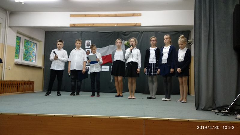 30 Kwi 2019 Apel z okazji rocznicy uchwalenia Konstytucji 3 Maja Wydarzenia / Aktualności Dnia 30 kwietnia 2019. odbył się w naszej szkole uroczysty apel z okazji rocznicy uchwalenia Konstytucji 3 Maja przygotowany przez p. Annę Błądek-Muzyk i p. Joannę Rachwalik oraz klasę Va i Vb.