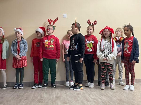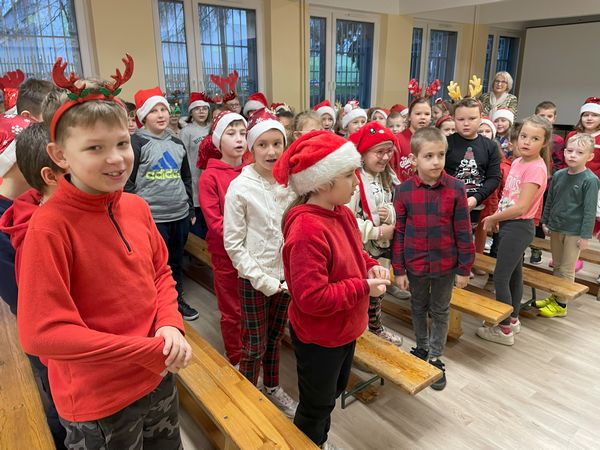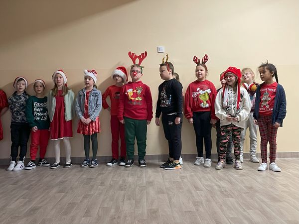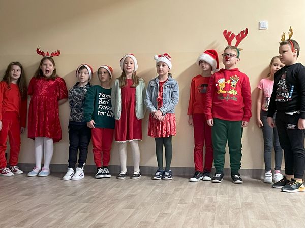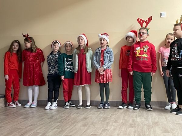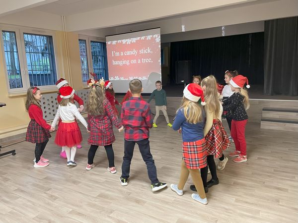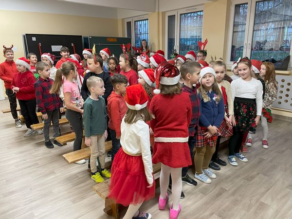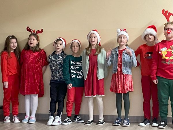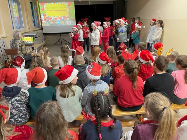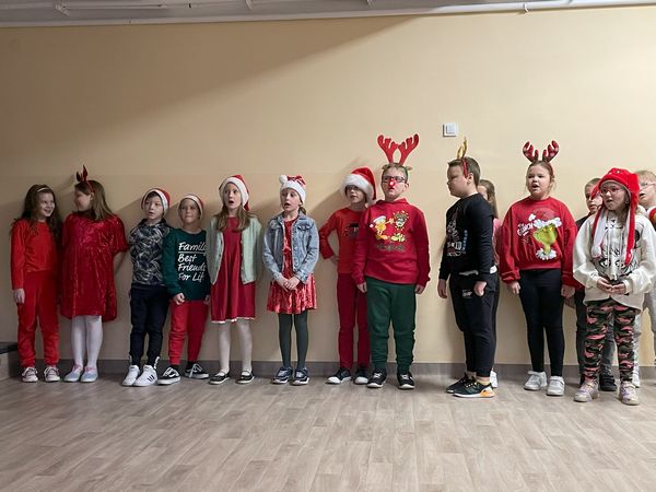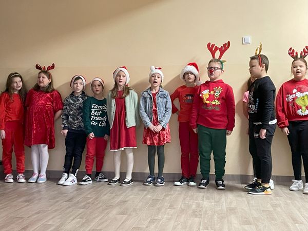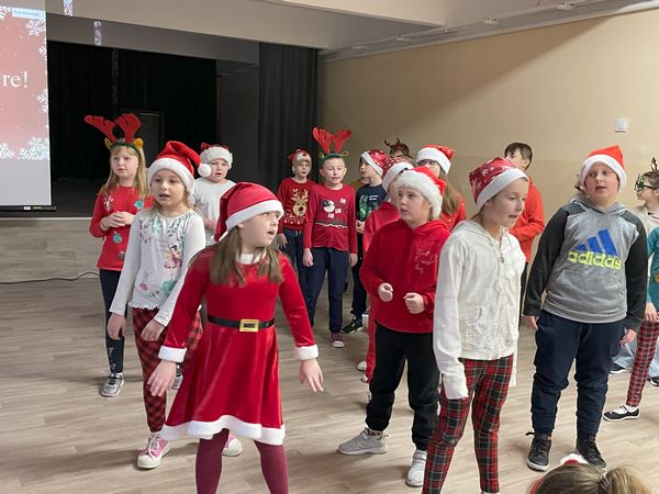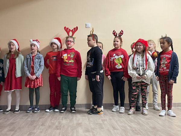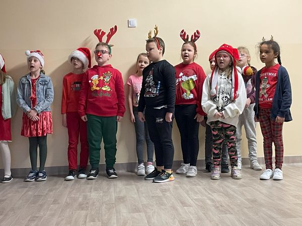 20 Gru 2023 Christmas songs Wydarzenia / Aktualności Dnia 20 grudnia klasy 1-3 pod kierunkiem pani Bożeny Kruc pięknie zaprezentowały świąteczne piosenki w języku angielskim.