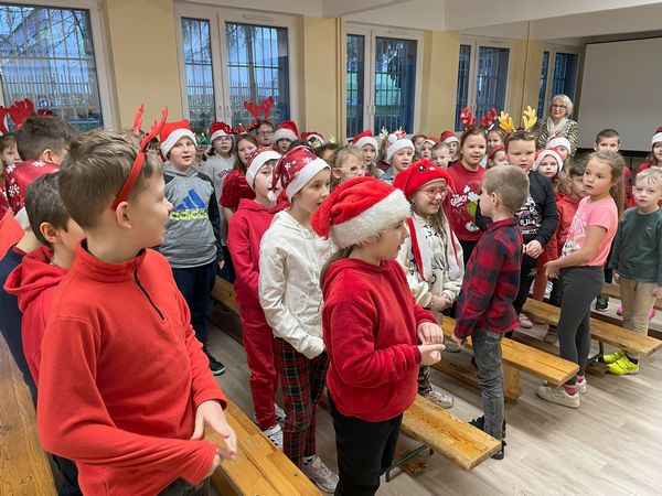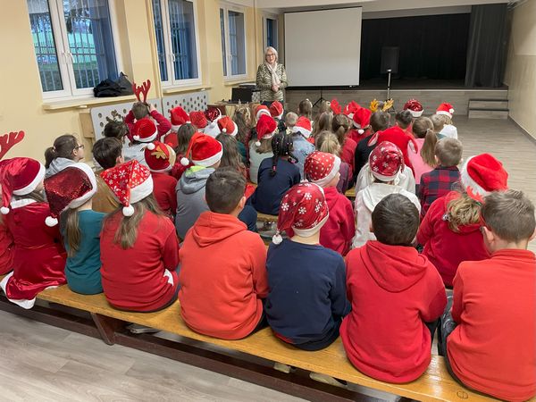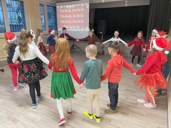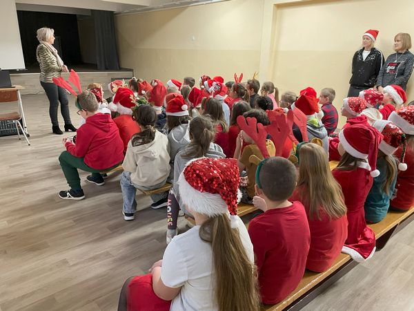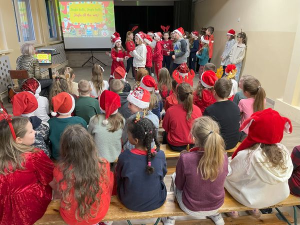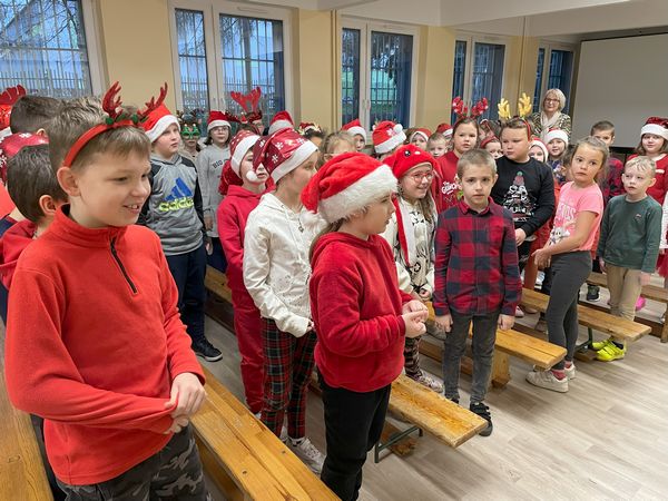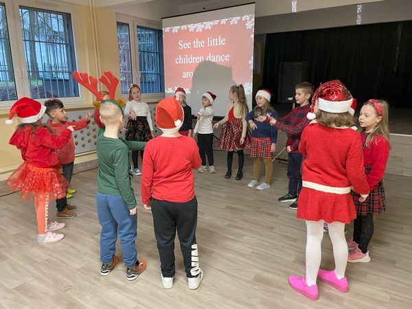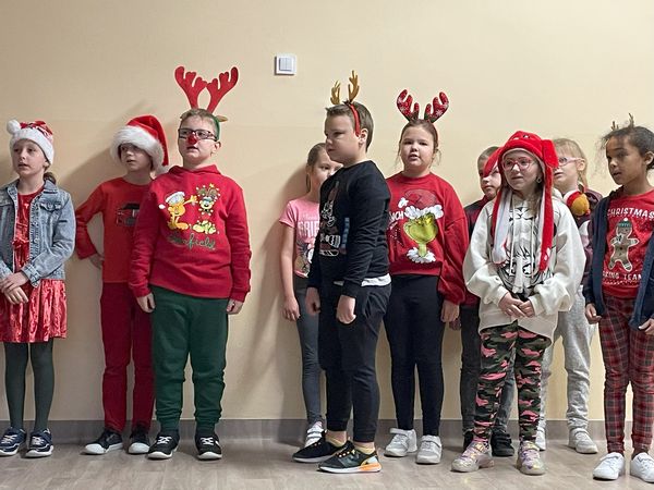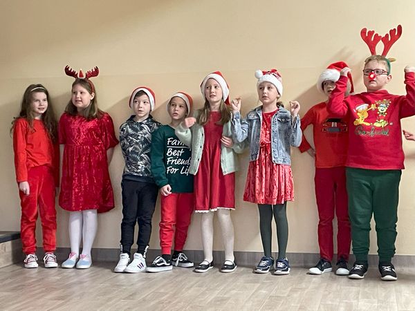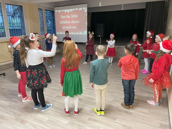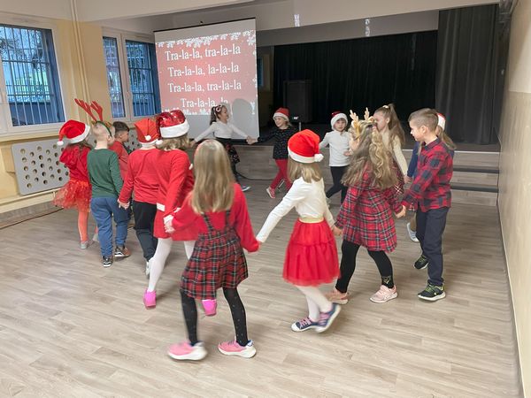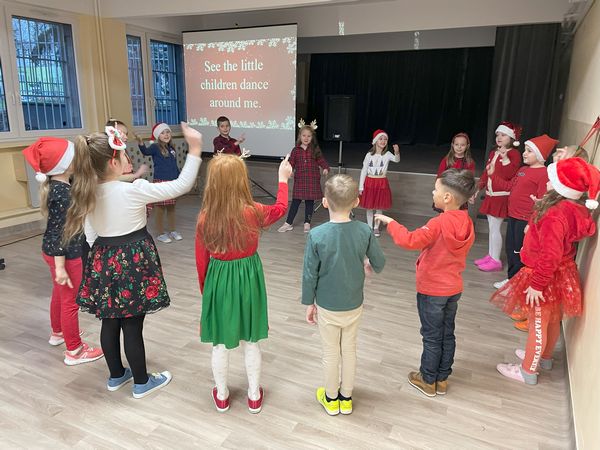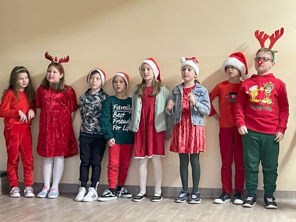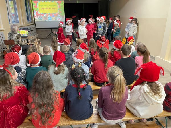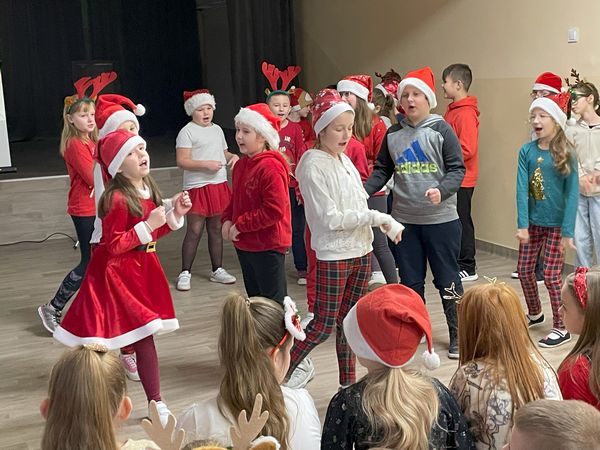 20 Gru 2023 Christmas songs Wydarzenia / Aktualności Dnia 20 grudnia klasy 1-3 pod kierunkiem pani Bożeny Kruc pięknie zaprezentowały świąteczne piosenki w języku angielskim.