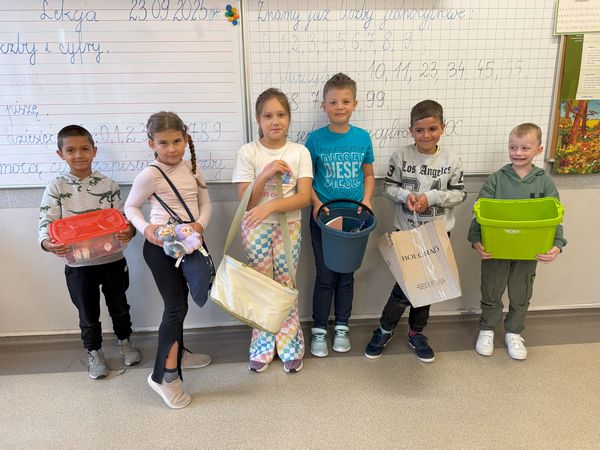 23 września odbył się w naszej szkole Dzień bez plecaka. Korzystając ze swojej pomysłowości i sprytu uczniowie swoje książki, zeszyty i przybory szkolne przynieśli w koszykach sklepowych, transporterach dla zwierząt, walizkach, wiaderkach i wielu innych nietypowych rzeczach.