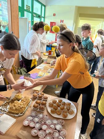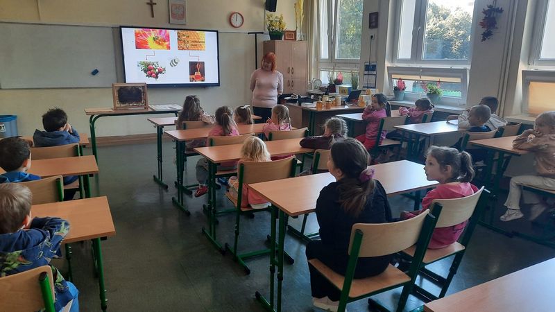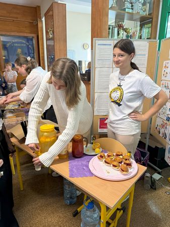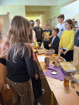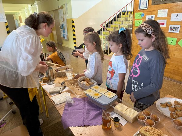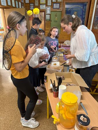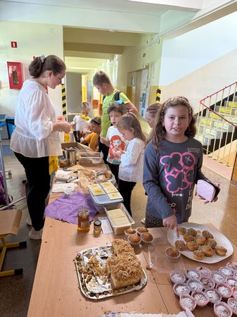 W naszej szkole jak co roku 18 września obchodziliśmy ŚWIĘTO MIODU z udziałem przedszkolaków. Miłośnicy miodu słodko i miło spędzili czwartek. Spróbować można było upieczone przez uczniów miodowe ciasta, babeczki, kuleczki, lemoniadę oraz różne rodzaje miodu naturalnego. Nie zabrakło też prelekcji o miodzie i pszczołach przygotowaną przez panią Kasię Chodań. Dzieci jak "pszczoły do ula" mogły zobaczyć żywe pszczółki, jej królową, ul i skosztować zdrowe miody.