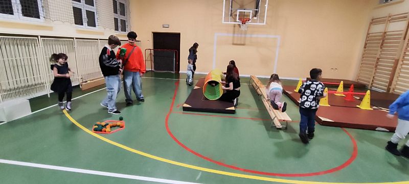 Gdy energia zaczynała rozpierać, idealnym miejscem do jej spożytkowania była sala gimnastyczna. Wesoły tor przeszkód okazał się prawdziwym hitem i udowodnił, że ruch to nie tylko zdrowie, ale także świetna zabawa.