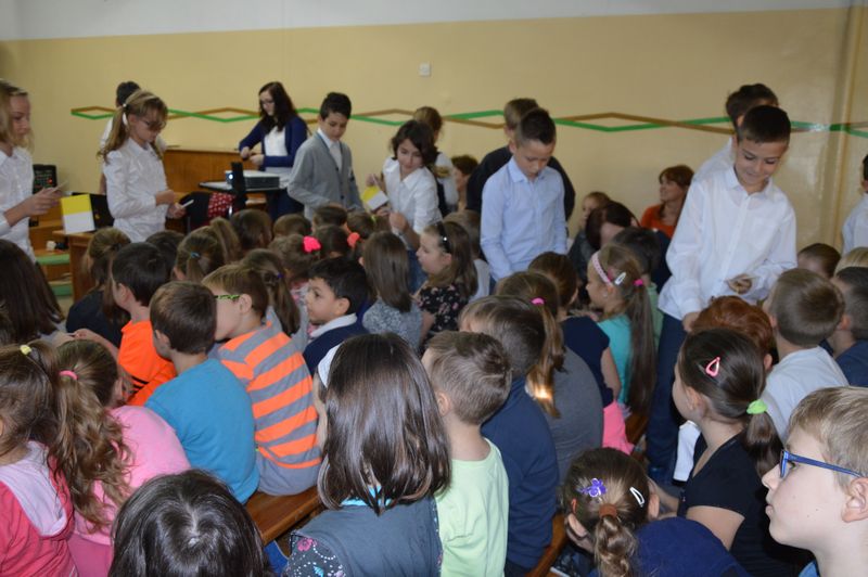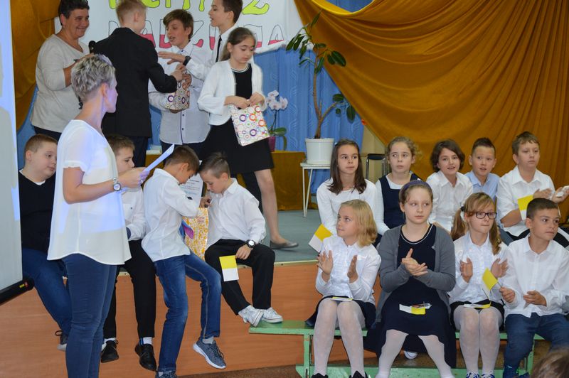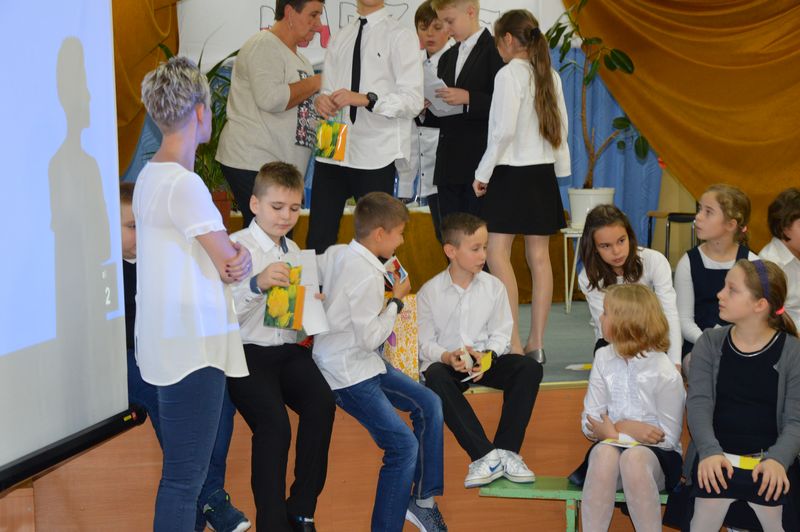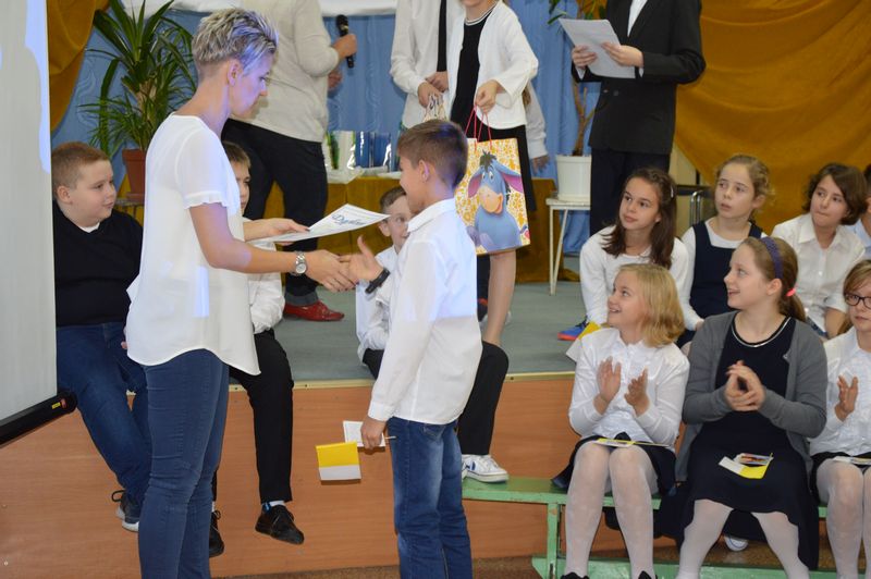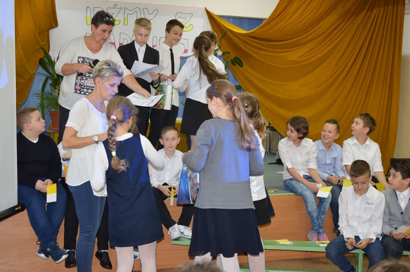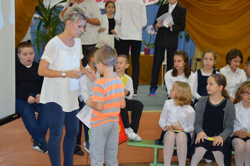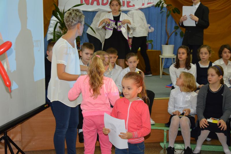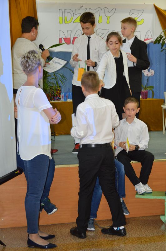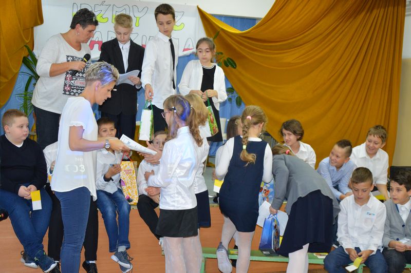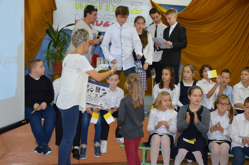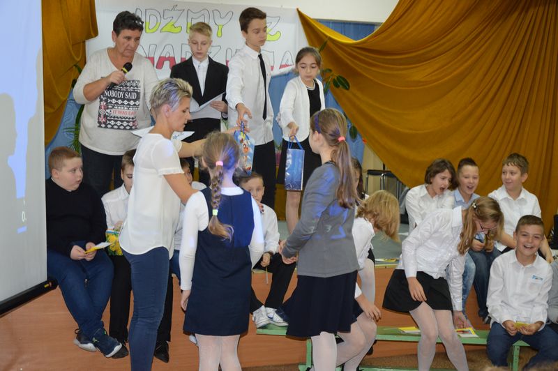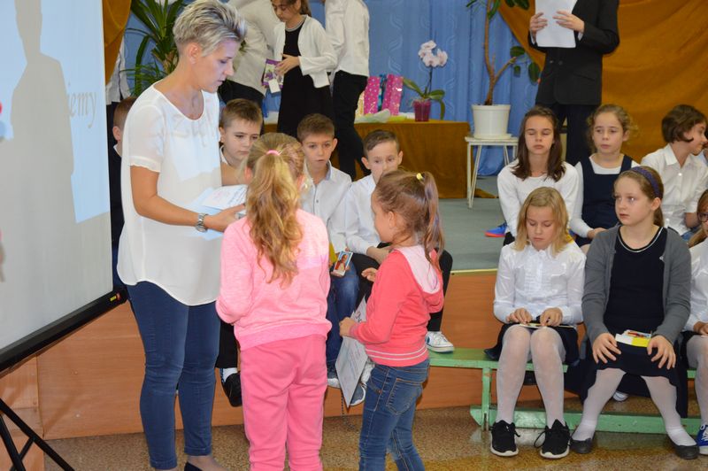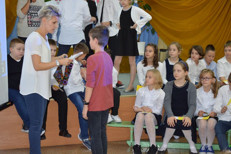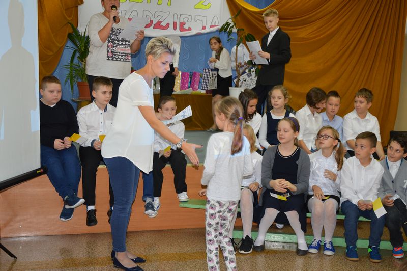 16 października obchodziliśmy w naszej szkole Dzień Papieski. Tegoroczna uroczystość przebiegała pod hasłem "Idźmy naprzód z nadzieją". Uczniowie klasy IVb pod kierunkiem pani Małgorzaty Wyjadłowskiej przygotowali program słowno-muzyczny, podczas którego przybliżyli najważniejsze fakty z życia Jana Pawła II i jego refleksje o nadziei. Ukazali papieża jako niestrudzonego pielgrzyma, orędownika pokoju i miłości, człowieka który lubił chodzić po górskich szlakach, który zachęcał nas do życia w świętości. Pani Małgorzata opowiedziała nam kilka anegdotek z życia Jana Pawła II, ponieważ jak pamiętamy papież uwielbiał żartować. Następnie uczniowie zaśpiewali ukochaną pieśń papieża "Barkę" oraz rozdali wszystkim zgromadzonym uczniom i nauczycielom biało-żółte chorągiewki oraz obrazki z wizerunkiem Jana Pawła II.