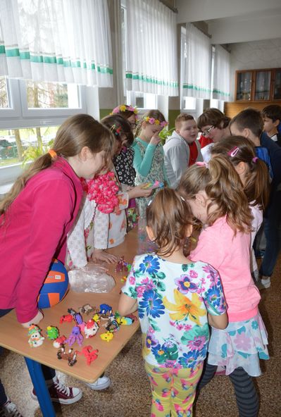 Od wielu lat w naszej szkole zgodnie z tradycją uroczyście świętujemy nadejście Wiosny. Często ten dzień jest dla uczniów okazją do wagarów. Uczniowie naszej szkoły pokazali jednak, że to szczególne święto można spędzić inaczej. W radosnych nastrojach uczniowie „wyszli z ławek”, aby na szkolnym korytarzu zaprezentować swoje hobby i zainteresowania. Mogliśmy zobaczyć kolekcje kart, klocków lego, figurek, monet, koralików, fantastycznych przedmiotów wykonanych z gumek i wiele innych.