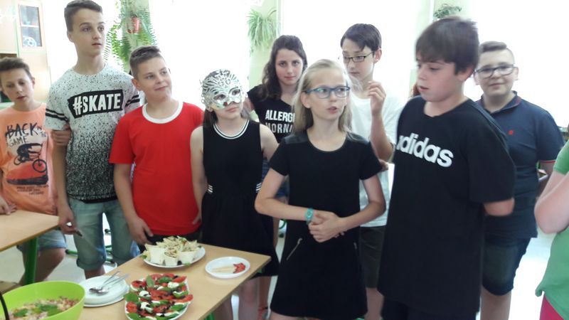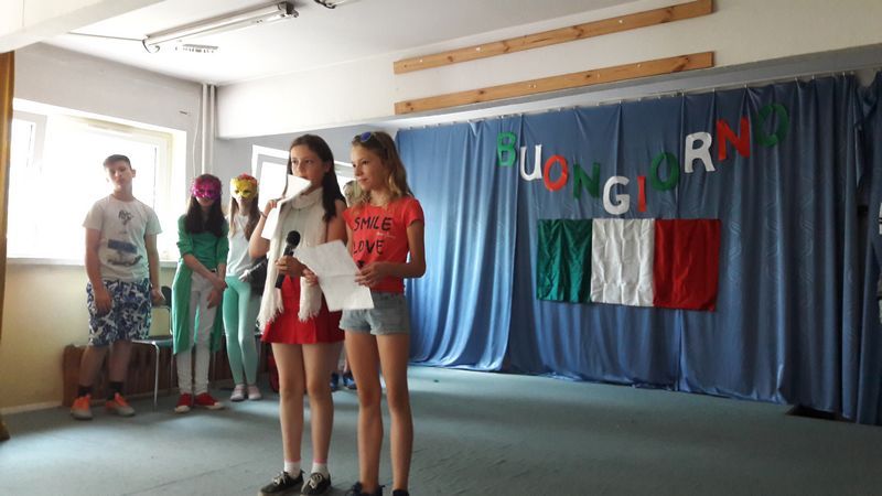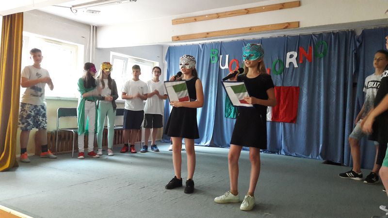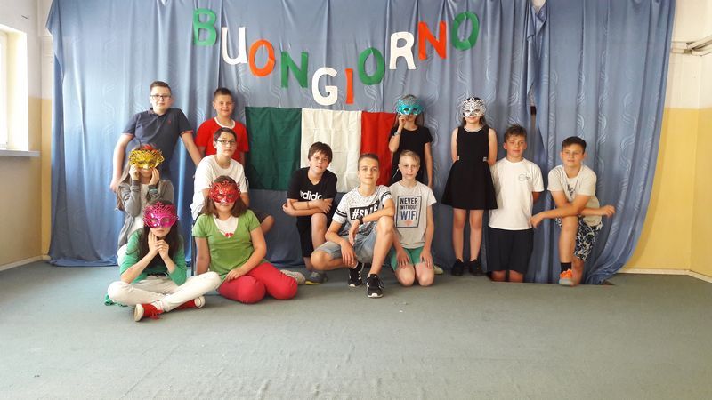 W tym dniu uczniowie mieli mieć na sobie jakieś elementy związane z Italią. Na szkolnych korytarzach mogliśmy zobaczyć chłopców ubranych w koszulki włoskich klubów sportowych, na twarzach dziewczyn pojawiły się weneckie maski karnawałowe. Na wyróżnienie zasługuje klasa VII, która zaangażowała wszystkich swoich uczniów - przebrała się w kolory włoskiej flagi.