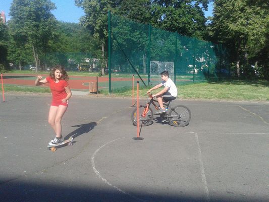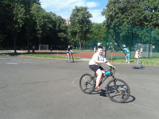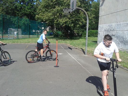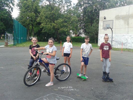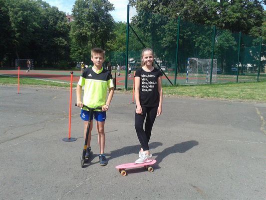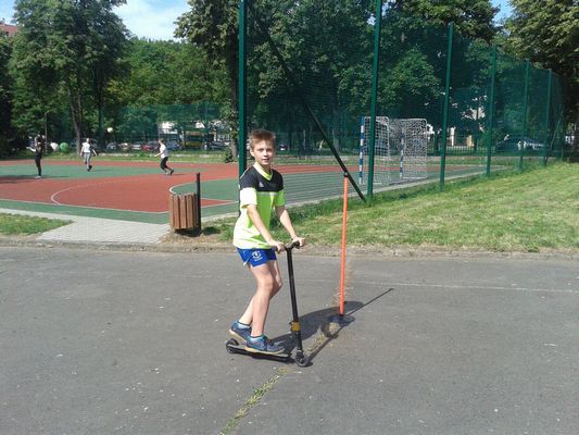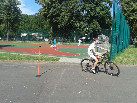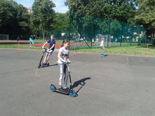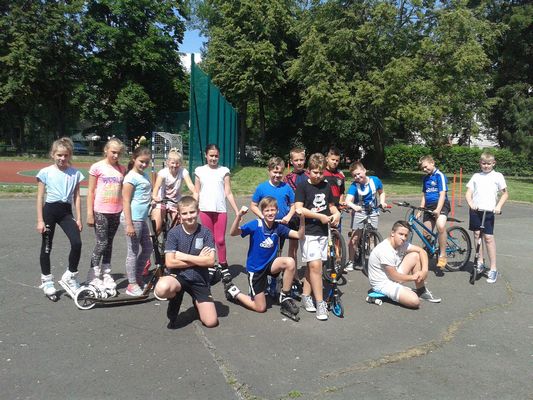 Dnia 25 maja 2018 r. odbyły się w klasach: IV - VII zajęcia w ramach lekcji wychowania fizycznego i programu STARS popularyzujące jazdę na rowerze, rolkach, deskorolce i hulajnodze. Uczniowie jeździli slalomem, zawieszali kapturki na tyczkach, sygnalizowali zamiary skrętu, a także musieli zważać na pozostałych uczestników tej zabawy. Humory dopisywały, pogoda też. Sądzę, że były to ciekawe zajęcia i z pewnością przyczyniły się do popularyzacji jazdy na rowerach. Zajęcia przeprowadził pan Paweł Szcześniewski.