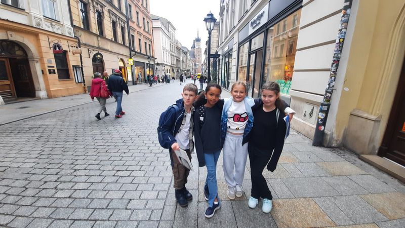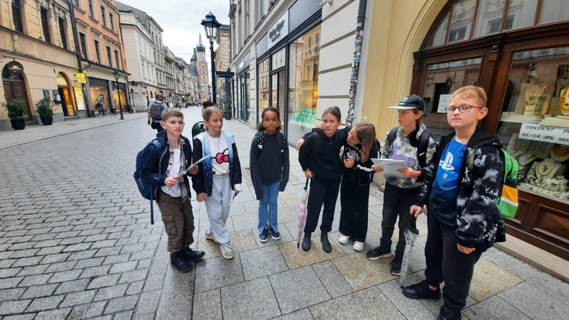 Dnia 16 września chętni uczniowie klasy 4a wybrali się z p. Iwoną Gębuś-Rodak na grę miejską po Krakowie. Uczniowie ucząc się współpracy w grupie poznawali historię i kulturę miasta, jego zabytki. Obserwowali otoczenie, rozwiązywali zagadki, malowali i uczyli się logicznego myślenia oraz orientacji w przestrzeni w atrakcyjny i aktywny sposób na świeżym powietrzu. Była to dla nich zdrowa rywalizacja, kreatywne myślenie, wytrwałość. Na mecie na zwycięską grupę czekała "pyszna" nagroda.