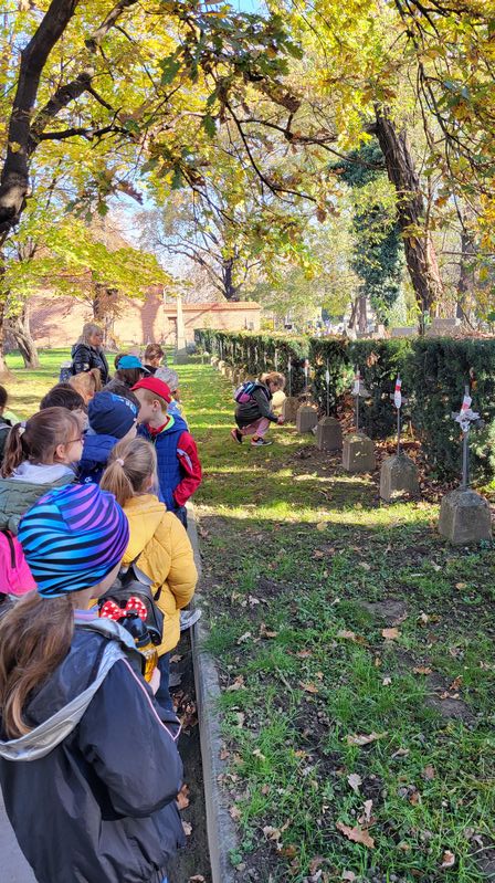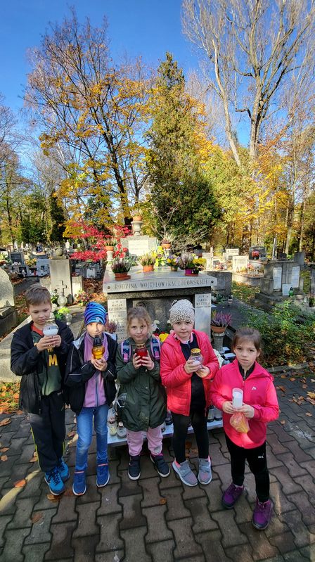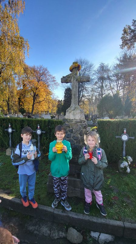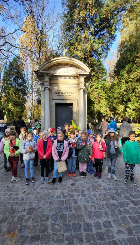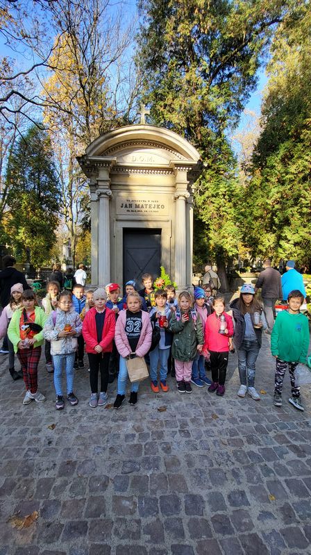 W piątek 28 października klasa 2a wraz z wychowawcą p. Beatą Krzesińską odwiedziła Cmentarz Rakowicki. Uczniowie odwiedzili Aleję Zasłużonych, przy której spoczywa wielu wybitnych artystów, sportowców, polityków, ludzi zasłużonych dla miasta Krakowa. Następnie klasa przeszła do grobu Jana Matejki - jednego z najwybitniejszych malarzy historycznych oraz patrona naszej szkoły. Dzieci uczciły pamięć zmarłych zapalając znicze oraz chwilą refleksji i zadumy.
