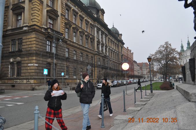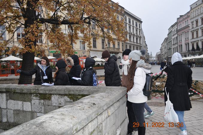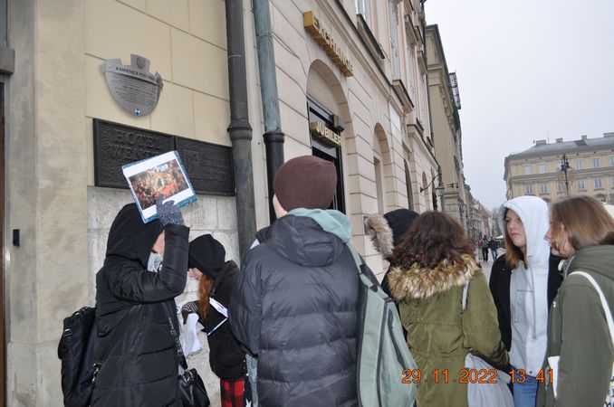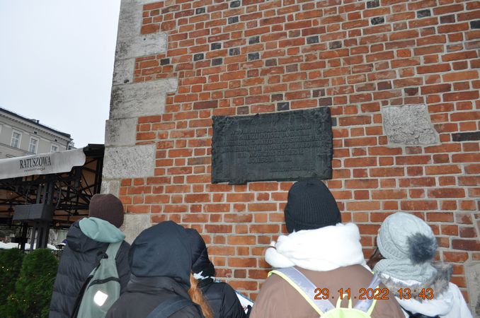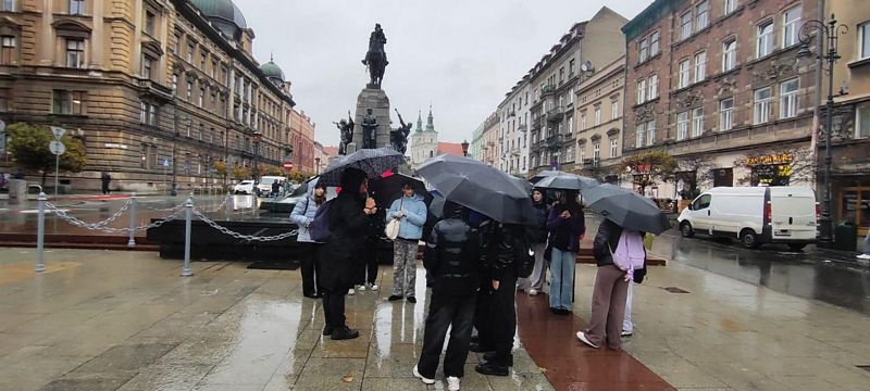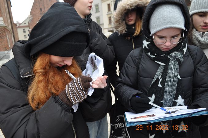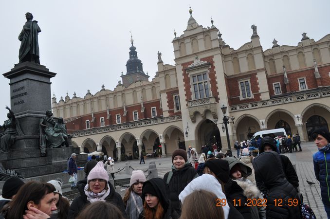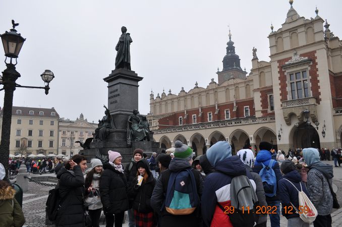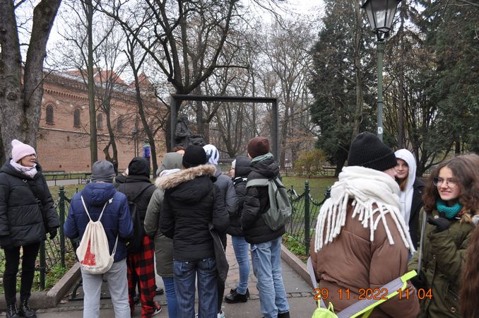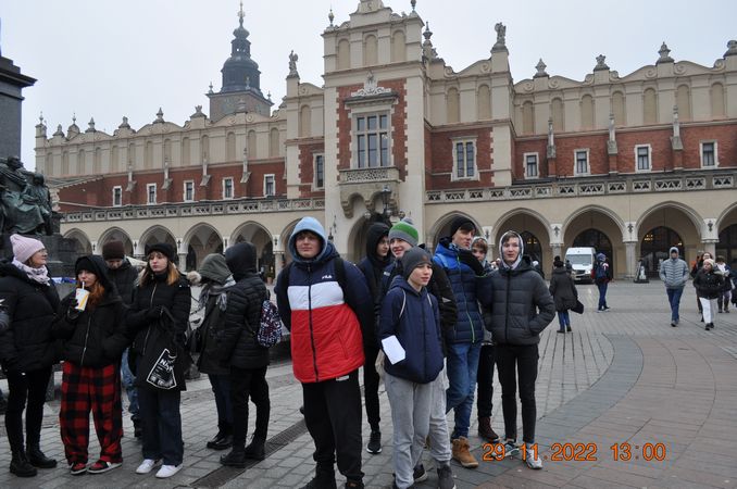 W listopadzie klasa 8a wraz z wychowawcą p. Joanną Rachwalik wybrała się na wycieczkę po Krakowie śladami patrona naszej szkoły - Jana Matejki. Malarz niemal całe życie mieszkał w Krakowie, dlatego spacerując po mieście można odwiedzić wiele miejsc, z którymi był związany. Uczniowie zobaczyli m. in Akademię Sztuk Pięknych, której kiedyś rektorem był Matejko, Bramę Floriańską, gdzie wisi płaskorzeźba Orła Piastowskiego zaprojektowana przez Jana Matejkę, pomnik Jana Matejki na plantach, dom malarza na ulicy Floriańskiej, Bazylikę Mariacką gdzie znajduje się polichromia wykonana przez Matejkę oraz Galerię Sztuki Polskiej XIX w w Sukiennicach, gdzie podziwiać można takie obrazy jak Wernyhora, Iwan Groźny, Kościuszko pod Racławicami, Hołd Pruski.