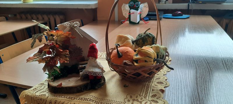 Nastała jesień za oknem i w naszej szkole. Uczniowie ozdobili swoje klasy jesiennymi plonami. Stworzyli piękne i naturalne kompozycje z kwiatów, warzyw i liści. Nie zabrakło też jesiennych zbiorów ze surowców wtórnych czy krajobrazów na gazetkach klasowych. Wszystkie pomysły sprawiły, że mamy w szkole kolorowy i ciepły nastrój jesieni. Najładniejsze sale zostały nagrodzone w konkursie "DARY JESIENI".
