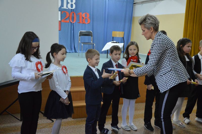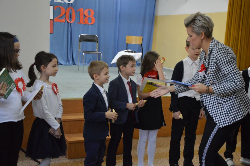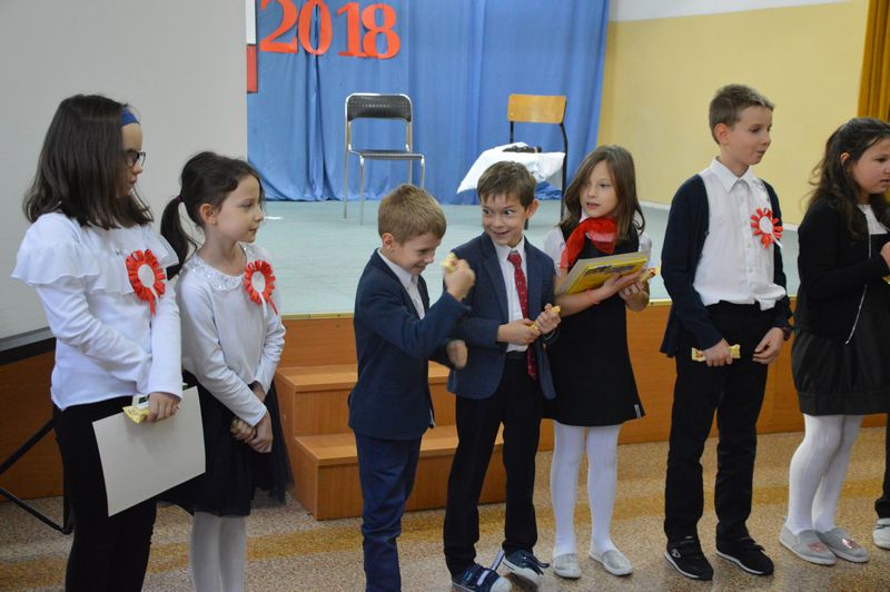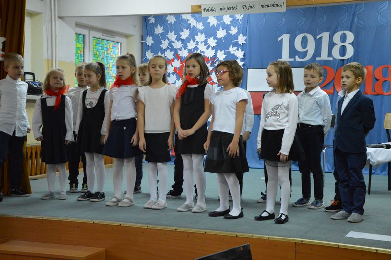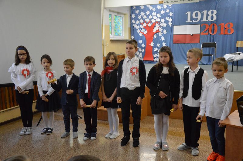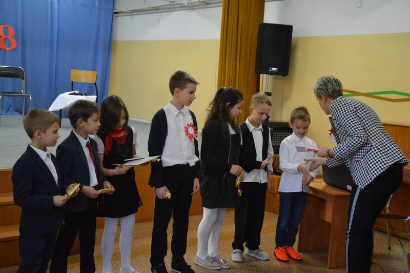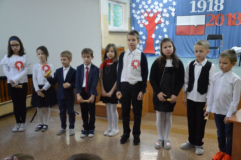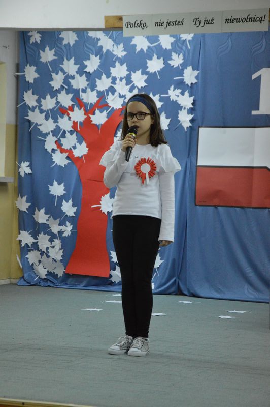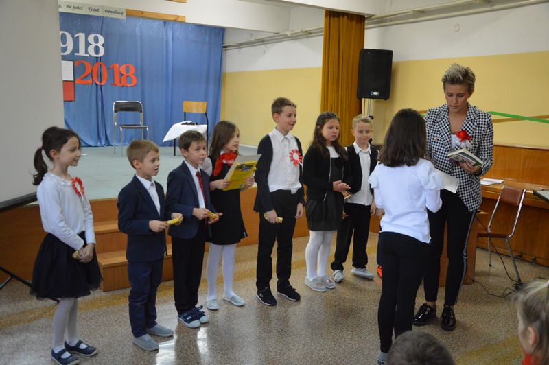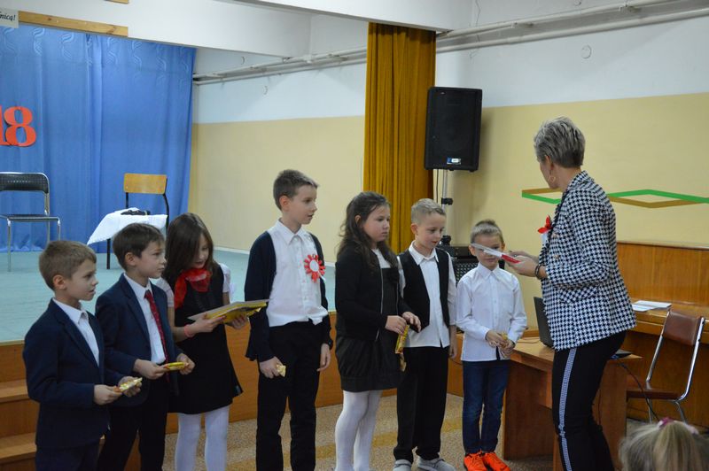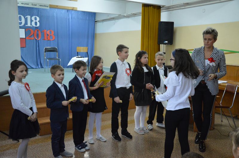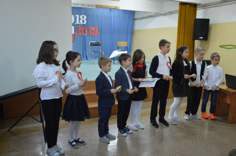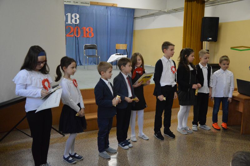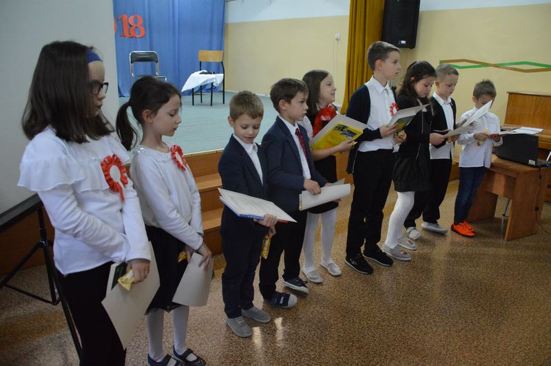 Dnia 8 listopada 2018r. odbył się w naszej szkole konkurs recytatorski wierszy patriotycznych klas I-III. Każda klasa zaśpiewała również wybraną przez siebie pieśń patriotyczną. W konkursie zaprezentowali się następujący uczniowie: