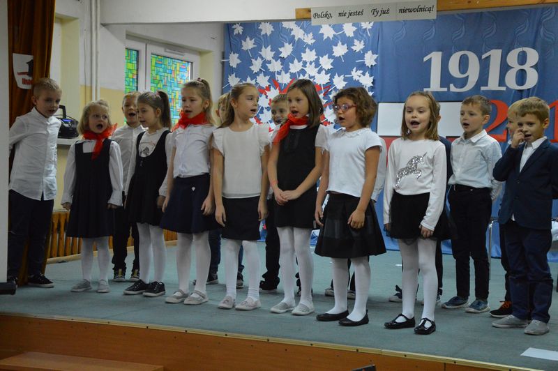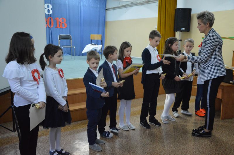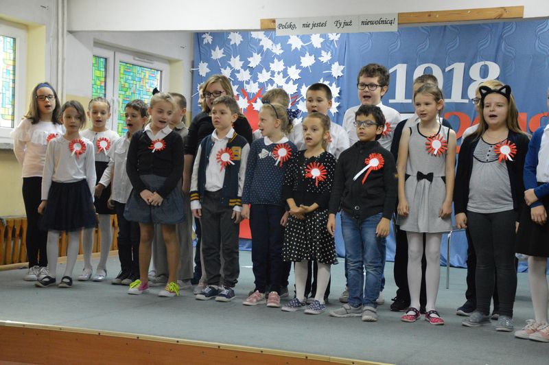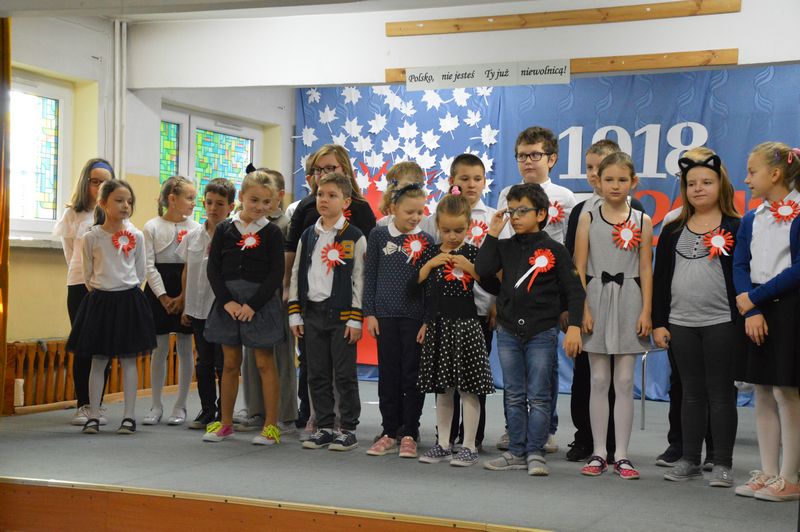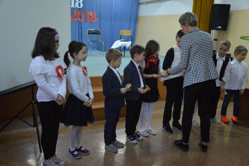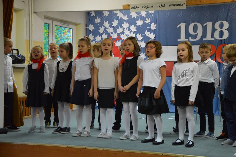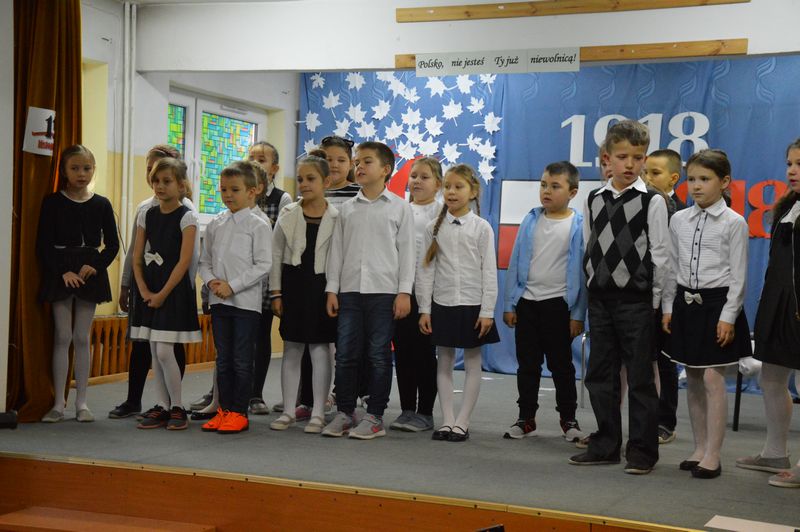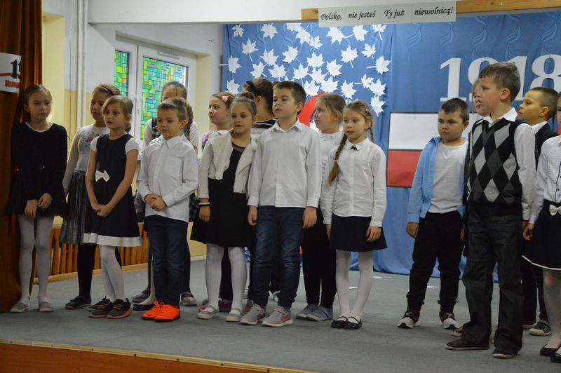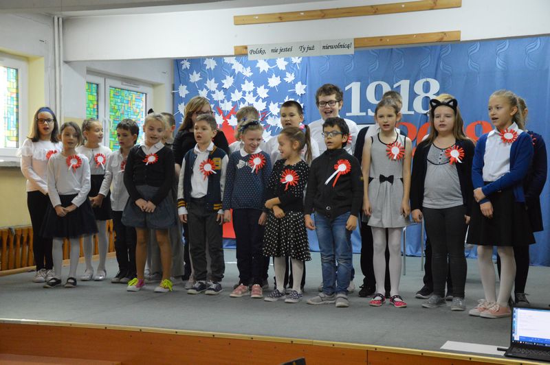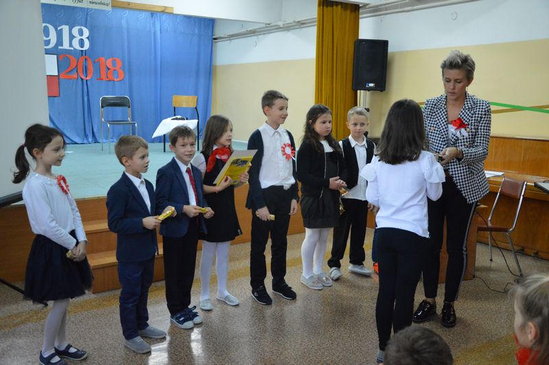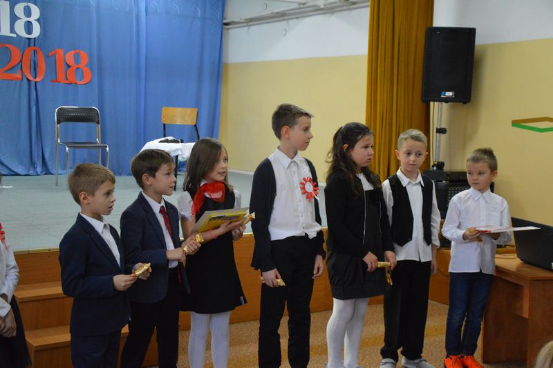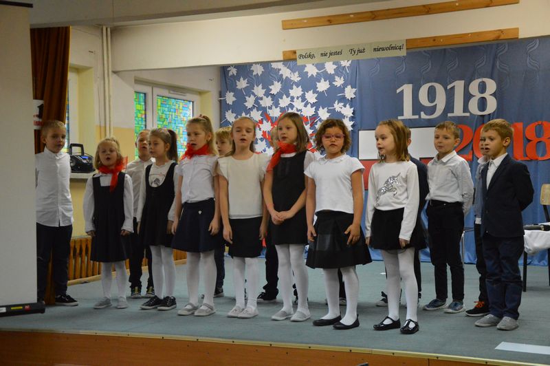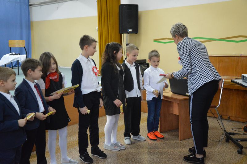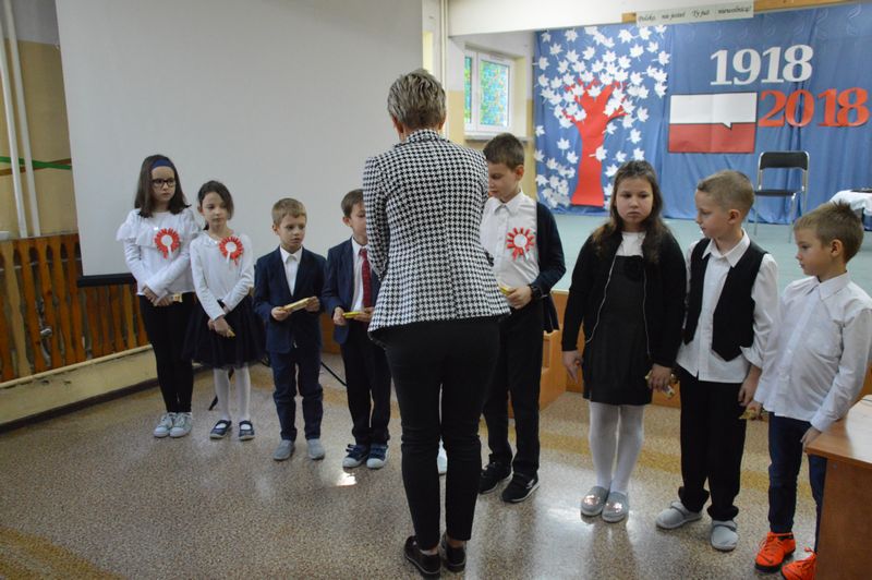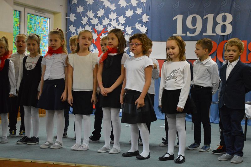 Dnia 8 listopada 2018r. odbył się w naszej szkole konkurs recytatorski wierszy patriotycznych klas I-III. Każda klasa zaśpiewała również wybraną przez siebie pieśń patriotyczną. W konkursie zaprezentowali się następujący uczniowie: