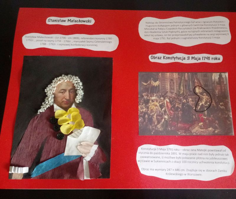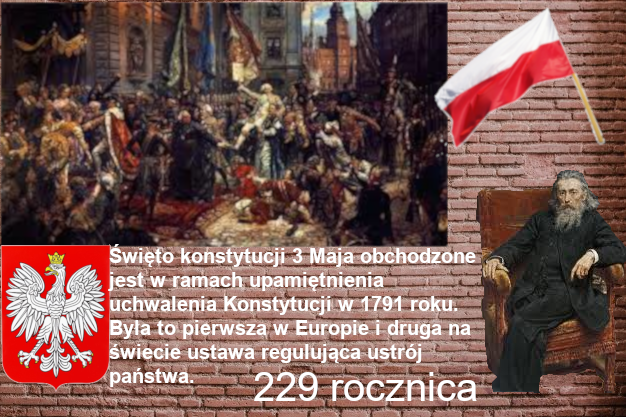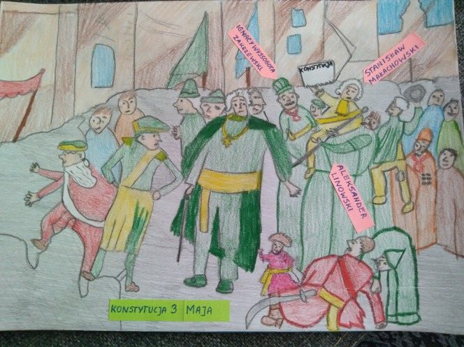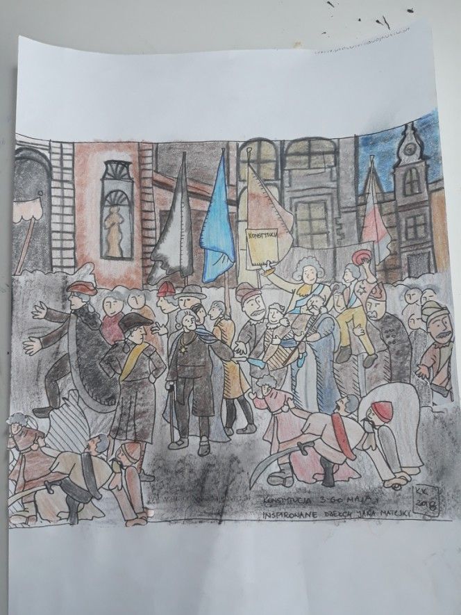 Już w najbliższą niedzielę obchodzić będziemy Święto Konstytucji 3 Maja. W tym roku nie przyjdziemy do szkoły w odświętnych strojach, nie zaśpiewany wspólnie pieśni patriotycznych. Nie możemy jednak zapomnieć o tak ważnym wydarzeniu jakim było uchwalenie pierwszej w Europie Konstytucji 3 maja. W tym roku będzie inaczej. Nasi uczniowie poznali historię tego wydarzenia przez obraz Jan Matejki ,, Konstytucja 3 maja 1791”. Prace Matejki nie zawsze przedstawiają wydarzenia zgodnie z prawdą historyczna. Zawsze jednak Jan Matejko chciał jak najwięcej nam przekazać.