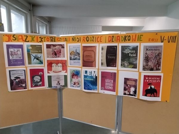 Od kilku dni w naszej szkole oglądać możemy ciekawą wystawę ,, Książki, które czytali nasi dziadkowie i rodzice,, Wystawa jest podsumowaniem projektu Książka łączy pokolenia. Projekt adresowany był do wszystkich uczniów naszej szkoły. W ramach projektu uczniowie na podstawie ankiety mieli dowiedzieć się jakie książki w dzieciństwie czytali ich dziadkowie i rodzice. Wszyscy wiemy, że nic tak nie pobudza wyobraźni jak właśnie czytanie. Czytamy, aby więcej wiedzieć, aby przyjemnie spędzić czas. Nic nie zastąpi dobrej książki. Celem naszego projektu było przede wszystkim promowanie czytelnictwa, zaciekawienie i zapoznanie z literaturą dziecięcą. Jak pisała Wisława Szymborska ,,Czytanie książek to najpiękniejsza zabawa, jaką sobie ludzkość wymyśliła,,