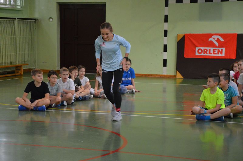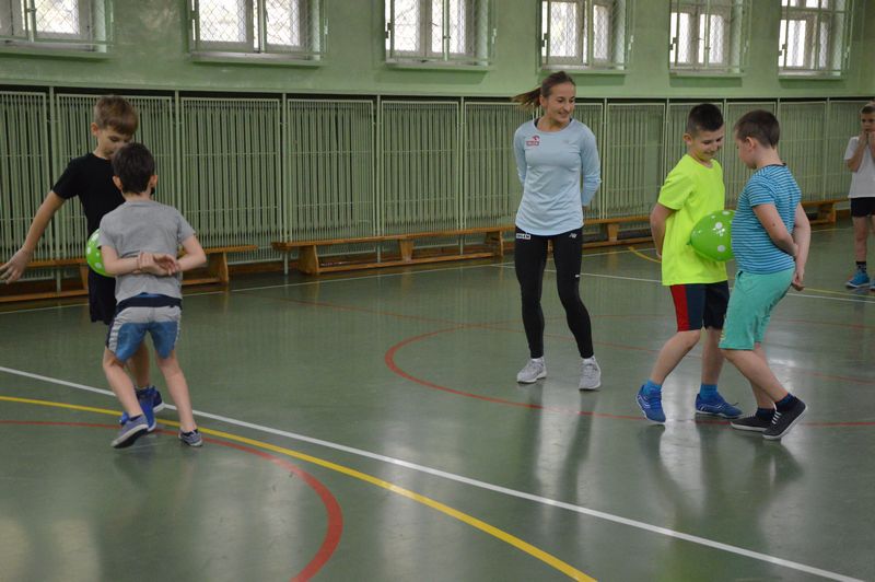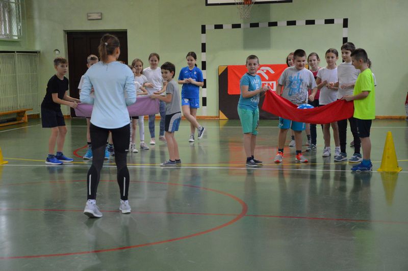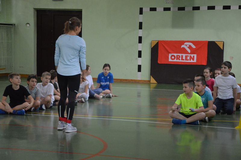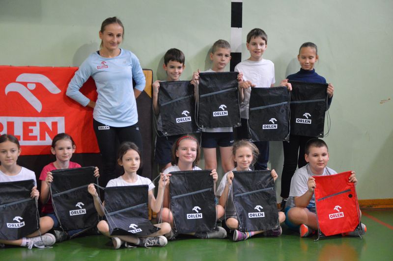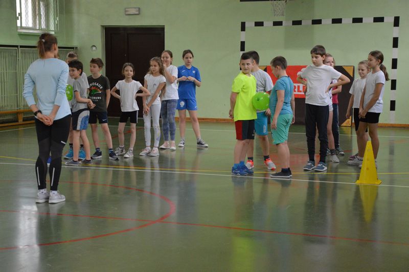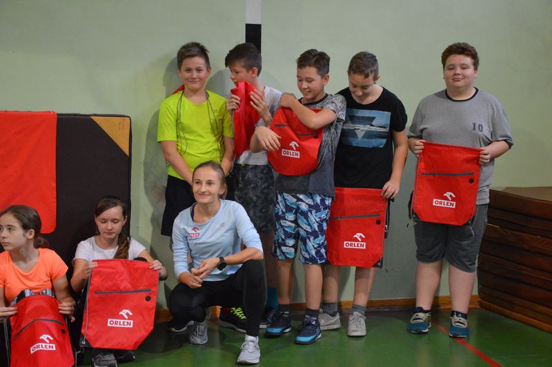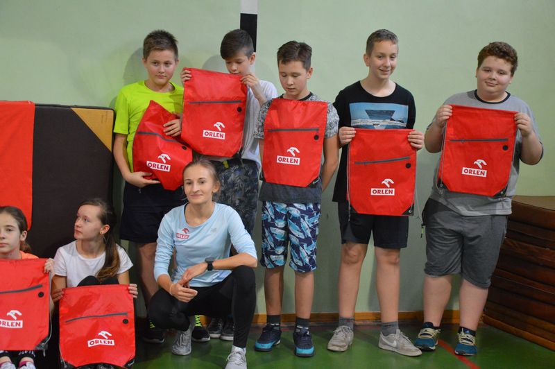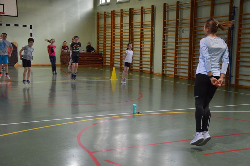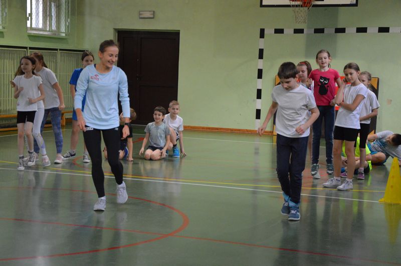 Dnia 10 stycznia odwiedziła naszą szkołę polska lekkoatletka, płotkarka i sprinterka Aleksandra Gaworska. Brązowa medalistka mistrzostw świata 2017 w sztafecie 4 × 400 metrów. Młodzieżowa mistrzyni Europy 2017 w sztafecie 4 × 400 metrów. To tylko niektóre osiągnięcia tej wspaniałej lekkoatletki. Aby zachęcić i urozmaicić lekcję wf pani Aleksandra Gaworska poprowadziła ciekawe zajęcia ruchowe w klasie 4a, 5a i 6b. Każdy z uczniów dostał upominek z logo sponsora, a następnie wszyscy zrobili sobie pamiątkowe zdjęcie. To była pełna wysiłku, ale i dobrej zabawy oraz humoru lekcja wf.