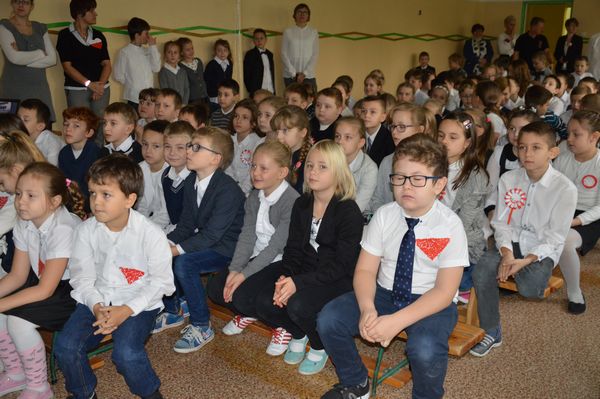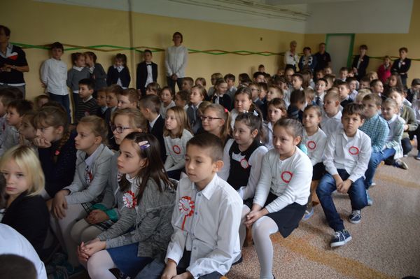 Dnia 10 listopada obchodziliśmy w naszej szkole Dzień Niepodległości. Z tej okazji uczniowie wspólnie zaśpiewali pieśni patriotyczne, m.in; Pierwsza Brygada, O mój Rozmarynie, Wojenko, wojenko, Rota, Pierwsza Kadrowa, które przypomniały nam, jak ważna dla Polaka jest wolność i ojczyzna. Następnie uczniowie obejrzeli prezentację z okazji 98 rocznicy odzyskania przez Polskę niepodległości. Podczas tej uroczystości przypomniane zostały nam dni 123 lat niewoli Polski, począwszy od dnia kiedy Polska jako niepodległe państwo przestała istnieć na mapie Europy, przez dzieje narodu polskiego w okresie zaborów, wypełnionego walką o wyzwolenie aż do dnia, w którym wzeszła jutrzenka wolności. Wspólne śpiewanie oraz prezentacja zostały przygotowane przez p. Annę Błądek- Muzyk oraz p. Justynę Rogus.