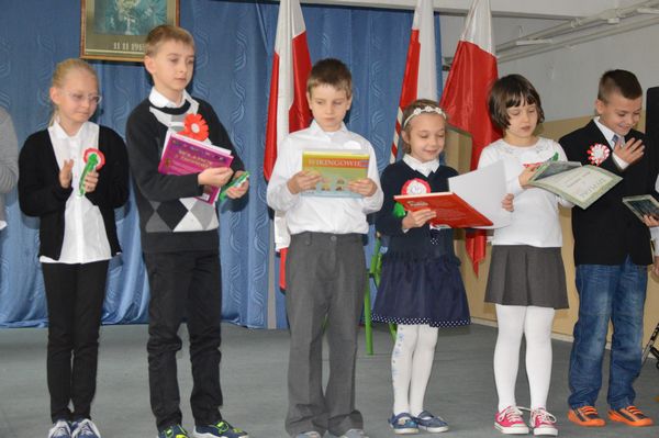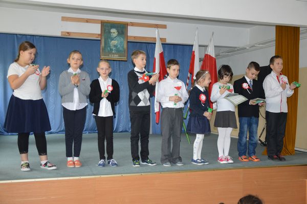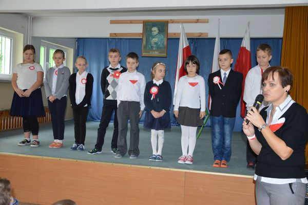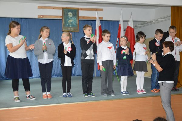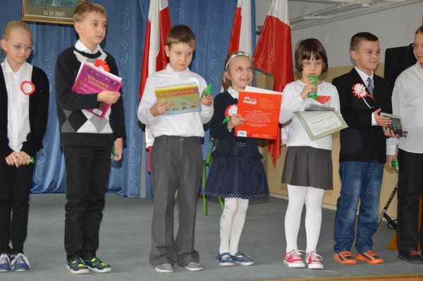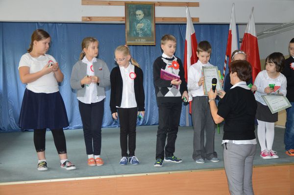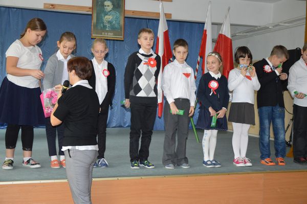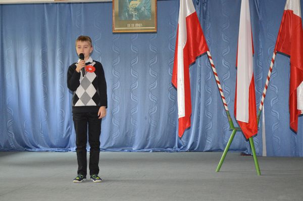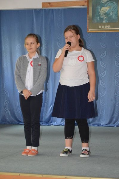 Po krótkiej przerwie odbył się konkurs recytatorski oraz prezentacja piosenek patriotycznych przez klasy 1-3.