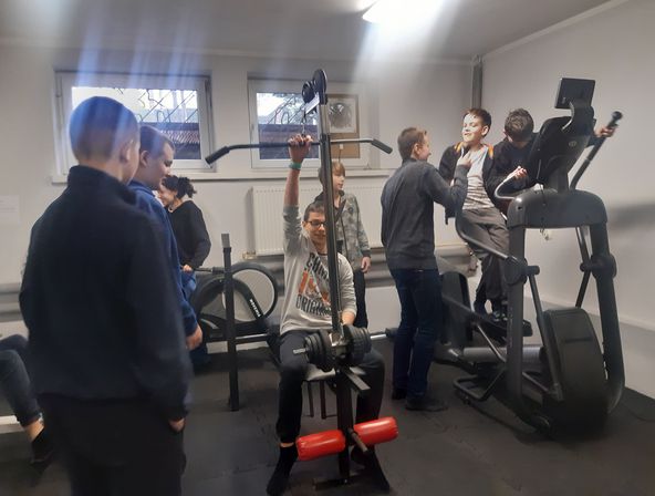 Podczas pobytu w instytucji dziewczęta i chłopcy zwiedzili ośrodek, zapoznali się z szeroką ofertą zajęć. Obserwowaliśmy trening na kortach tenisowych, oglądaliśmy basen, i sale sportowe. Ćwiczyliśmy na siłowni i oglądali zajęcia gimnastyki korekcyjnej.