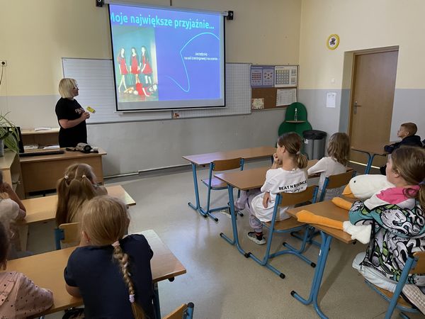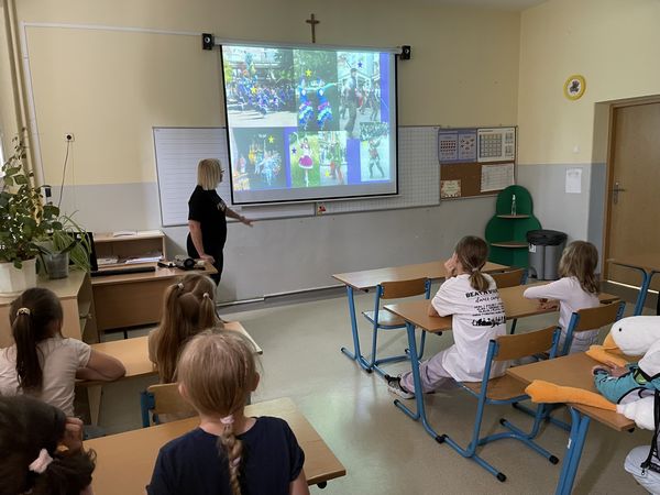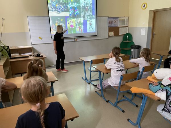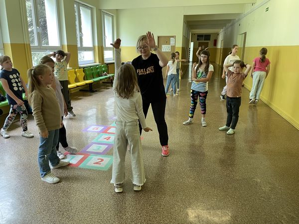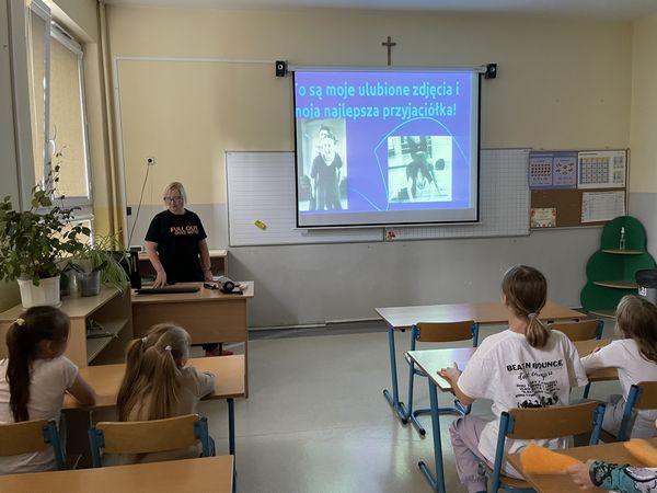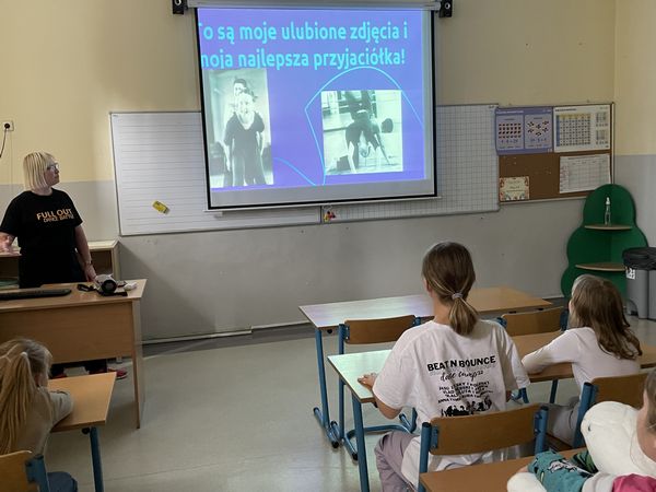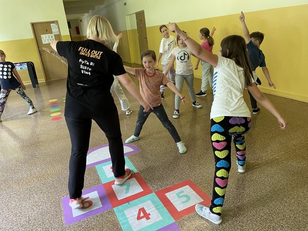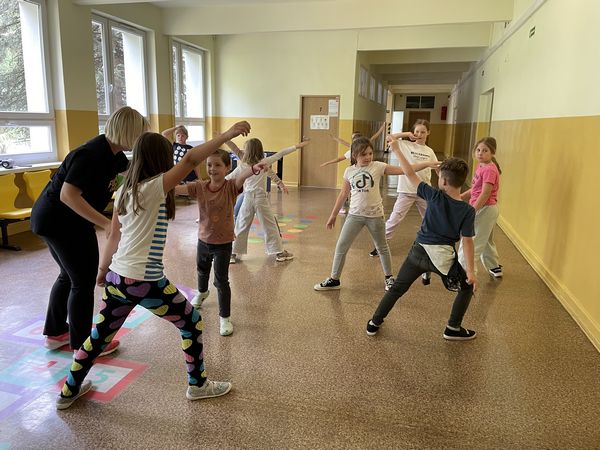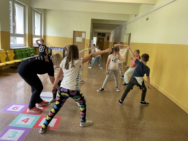 Dnia 15 czerwca w ramach projektu "Rodzice z KLASĄ" odbyły się w naszej szkole zajęcia hip-hop, które poprowadziła mama naszych uczniów - pani Anna Holdenmayer-Parzych. Najpierw nasi uczniowie obejrzeli krótką, ciekawą prezentację, która przedstawiła nam jak wyglądała taneczna pasja pani Anny od dzieciństwa, poprzez lata młodzieńcze, aż do czasów obecnych. Następnie rozpoczęła się część praktyczna, w której chętni uczniowie pod okiem pani Anny nauczyli się podstawowych kroków tańca hip-hop oraz udało im się wspólnie stworzyć krótki, wspaniały układ. Bardzo serdecznie dziękujemy pani Annie za zaangażowanie oraz fantastyczne zajęcia.