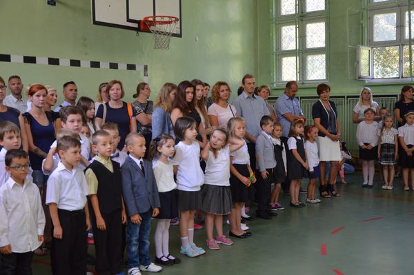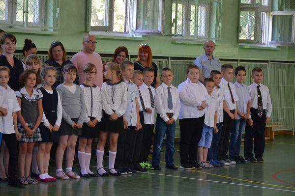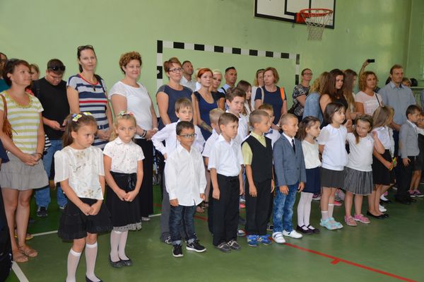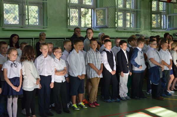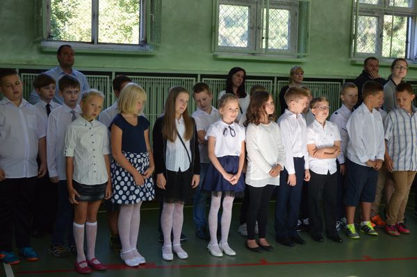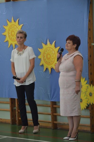 Następnie uczniowie udali się na salę gimnastyczną, gdzie nowa Pani Dyrektor – Magdalena Hyla z wielką radością powitała wszystkich uczniów, rodziców i nauczycieli. W krótkim przemówieniu przedstawiła najważniejsze informacje dotyczące organizacji pracy szkoły w nadchodzącym roku szkolnym oraz o zmianach w gronie pedagogicznym i tych, dotyczących przydziału wychowawców.