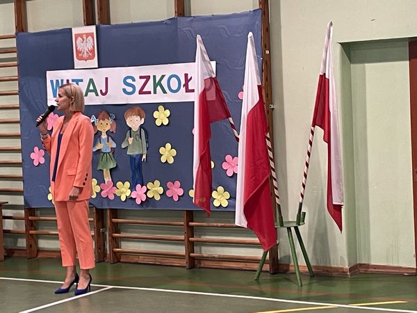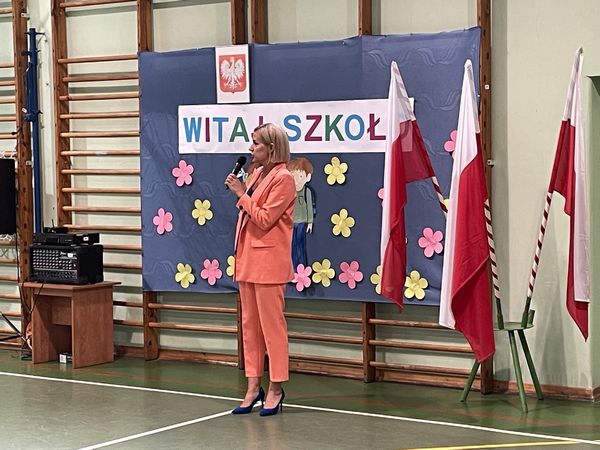 Dnia 4 września 2023r. uczniowie rozpoczęli rok szkolny 2023/2024. Pani dyrektor Magdalena Hyla radośnie powitała wszystkich uczniów po wakacyjnej przerwie, przedstawiła wychowawców klas oraz nowych nauczycieli. Następnie pani dyrektor życzyła uczniom sukcesów, rozwijania swoich talentów i zainteresowań, nowych przyjaźni oraz miłej, ciepłej atmosfery w szkole, aby wszyscy czuli się w niej dobrze. Po wybrzmieniu pierwszego dzwonka uczniowie udali się do klas na spotkanie z wychowawcami.