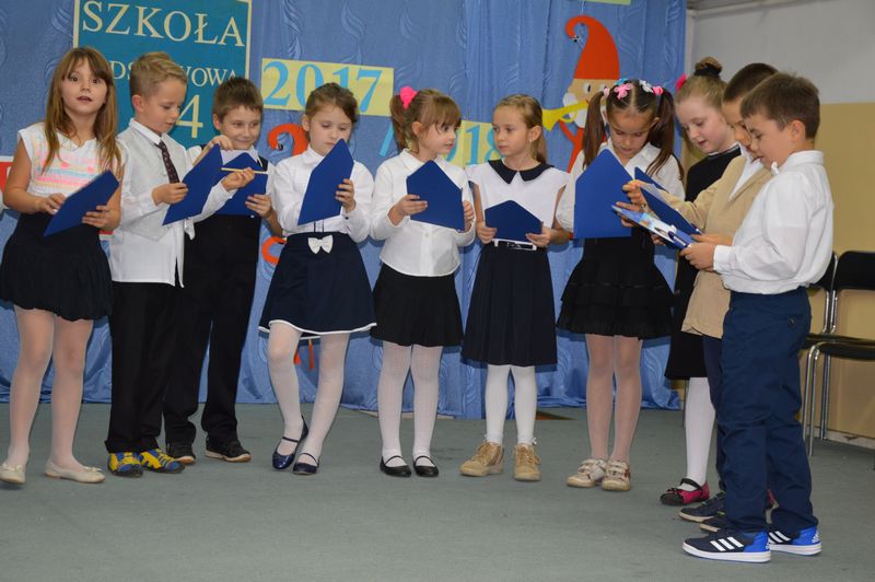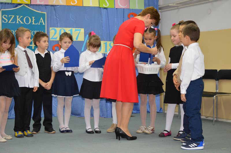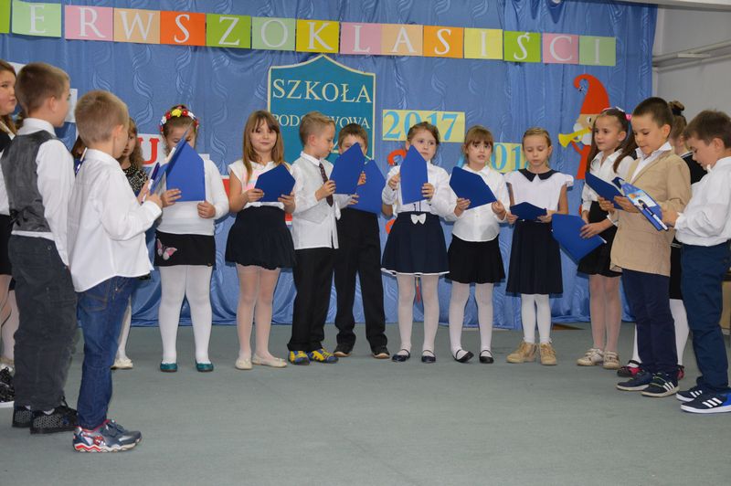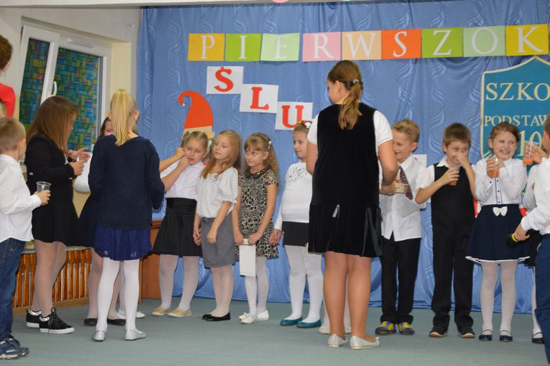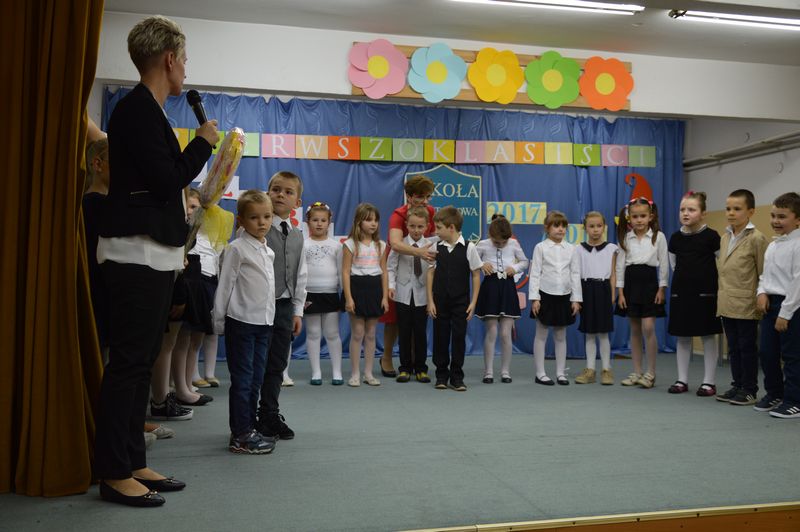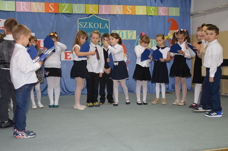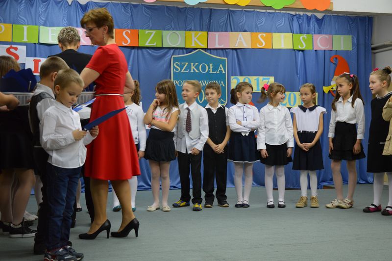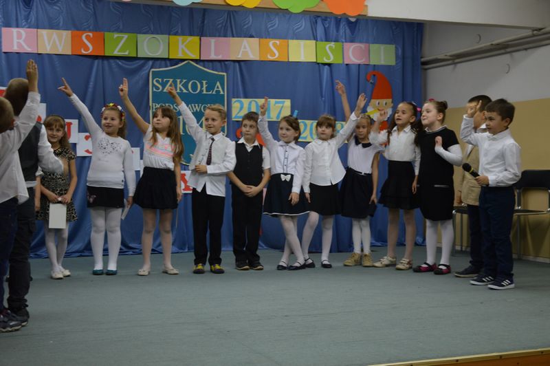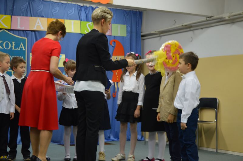 Dnia 17 października odbyło się w naszej szkole uroczyste pasowanie na ucznia. Uroczystość przygotowała wychowawczyni klasy I a - pani Marta Borczuch, a pomagały jej uczennice klasy IV a - Nikola Janeczek i Aleksandra Godzicka.