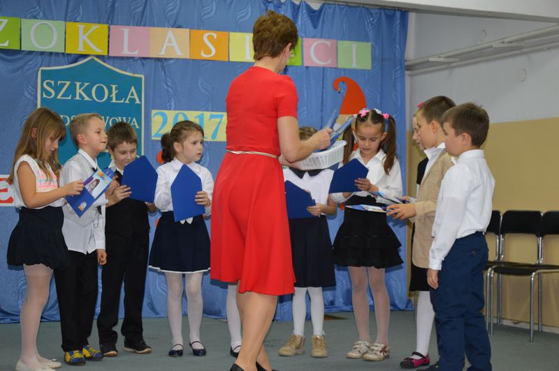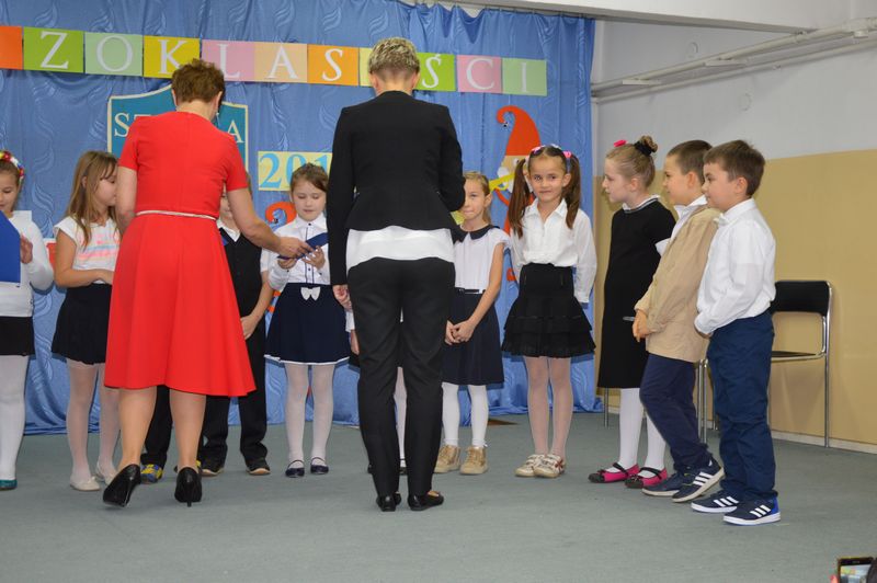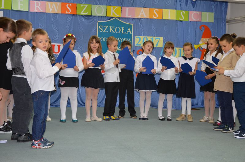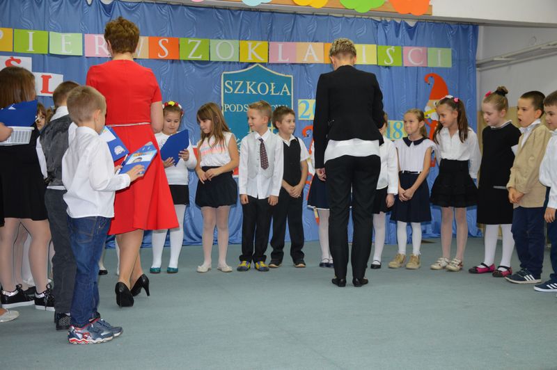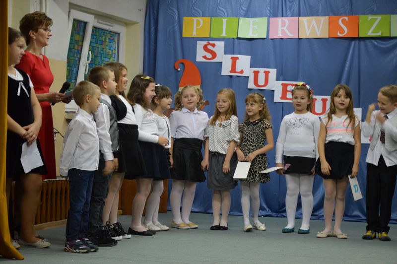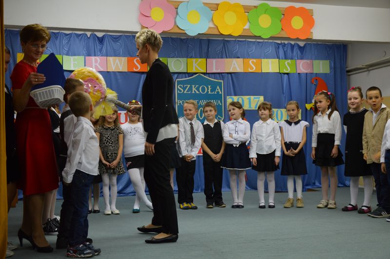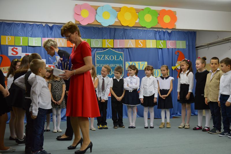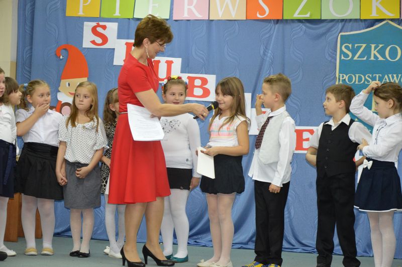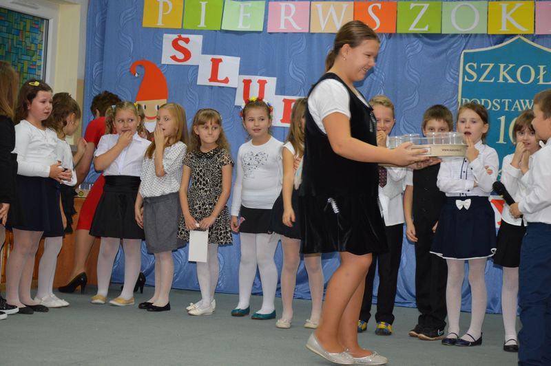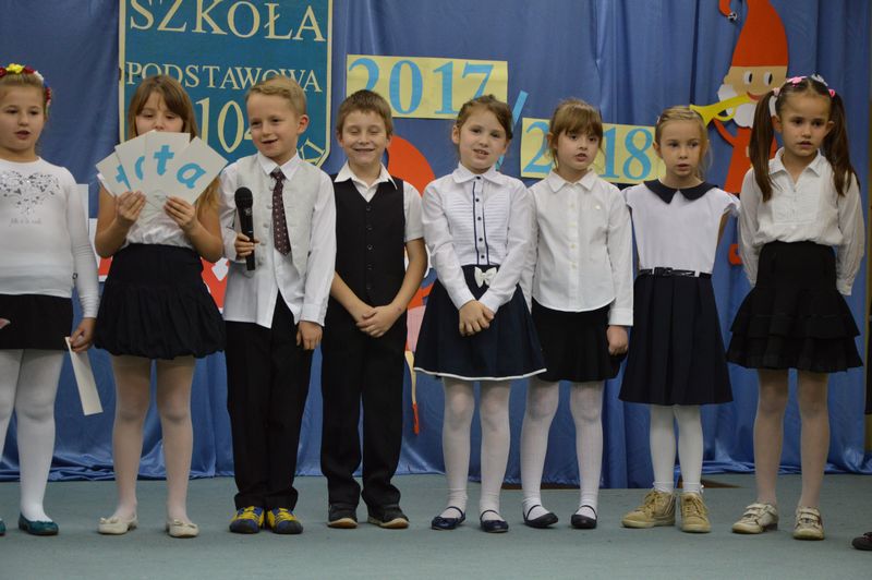 Dnia 17 października odbyło się w naszej szkole uroczyste pasowanie na ucznia. Uroczystość przygotowała wychowawczyni klasy I a - pani Marta Borczuch, a pomagały jej uczennice klasy IV a - Nikola Janeczek i Aleksandra Godzicka.
