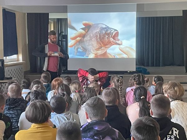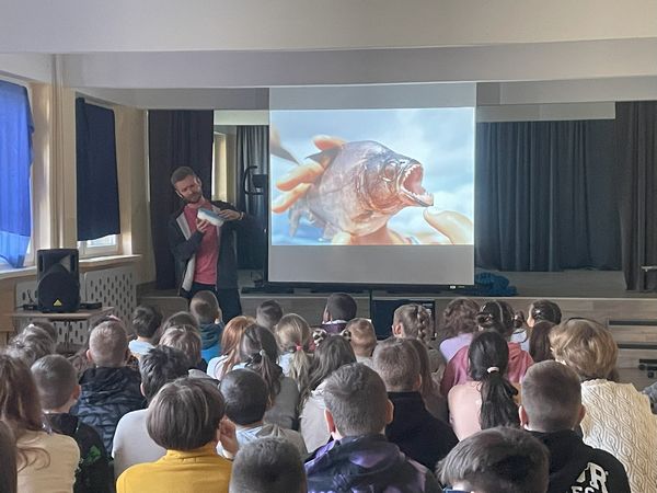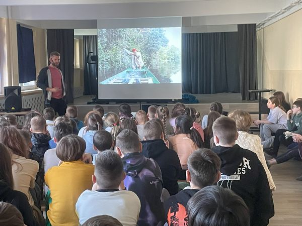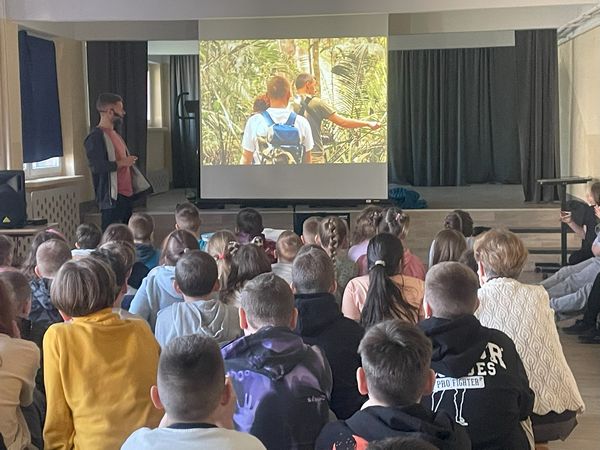 Dnia 25 lutego odbyło się spotkanie z podróżnikiem - Samuelem Kempskim z grupy Trzask, która organizuje wyprawy do różnych części świata. Uczniowie mieli okazję przenieść się na chwilę do lasu równikowego - do Amazonii. Tematem przewodnim była dżungla i Amazonia. Uczniowie usłyszeli wiele ciekawych informacji na temat tego jak można przeżyć w dżungli, dowiedzieli się jakie są trujące rośliny oraz niebezpieczne zwierzęta. Mogli z bliska zaglądnąć w oczy piranii, podziwiać egzotyczne ptaki, wysłuchali opowieści o wielkich pająkach oraz jadowitych wężach. Była to bardzo ciekawa lekcja geografii.