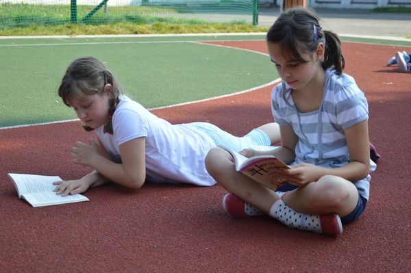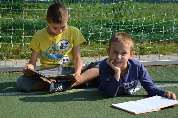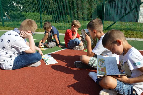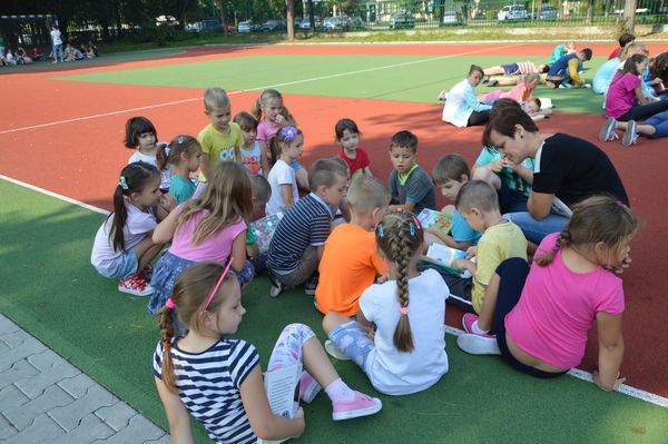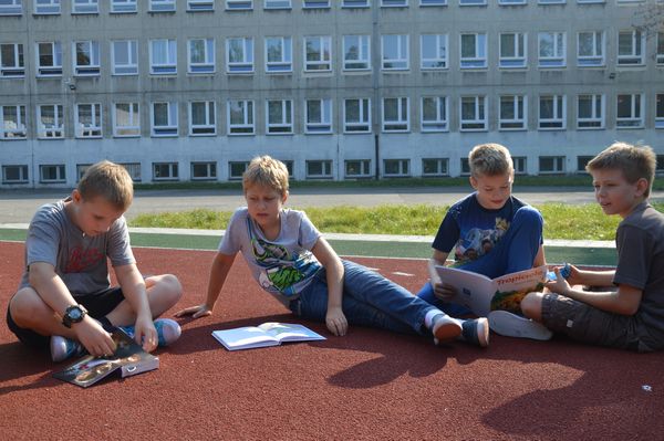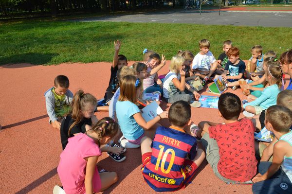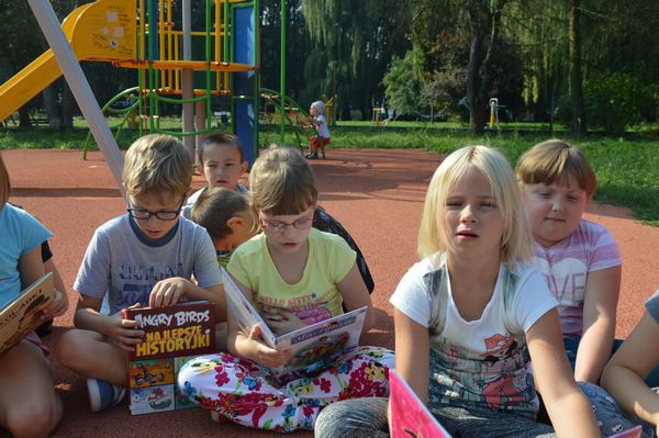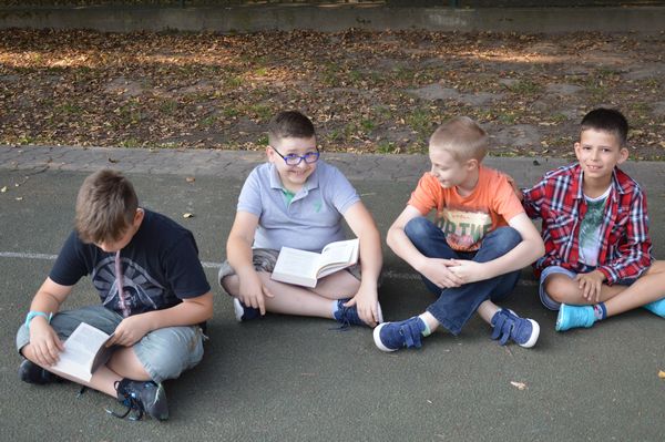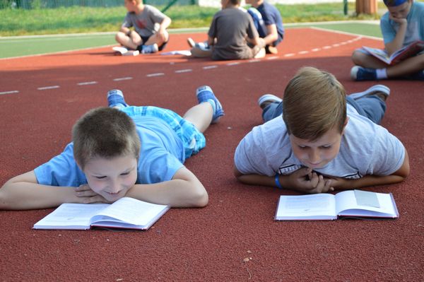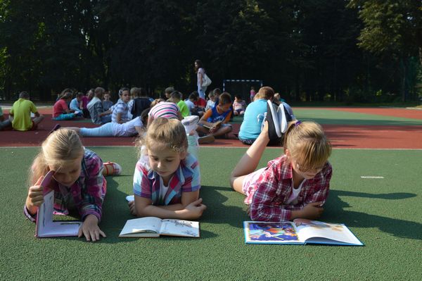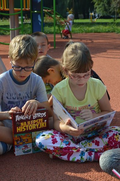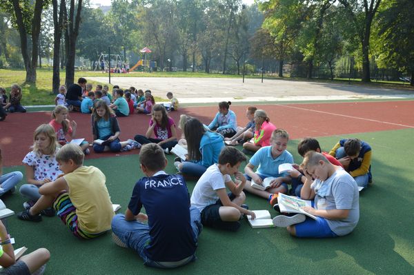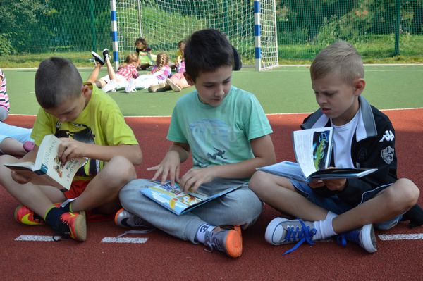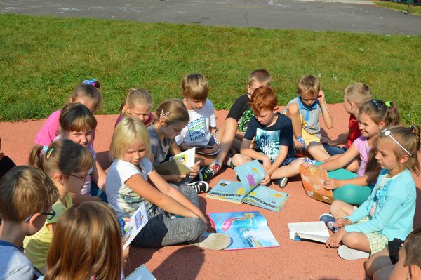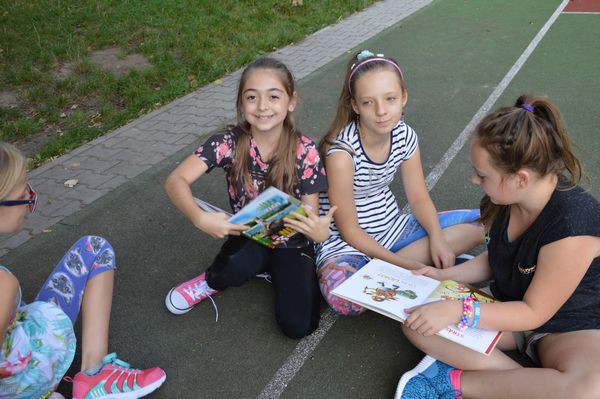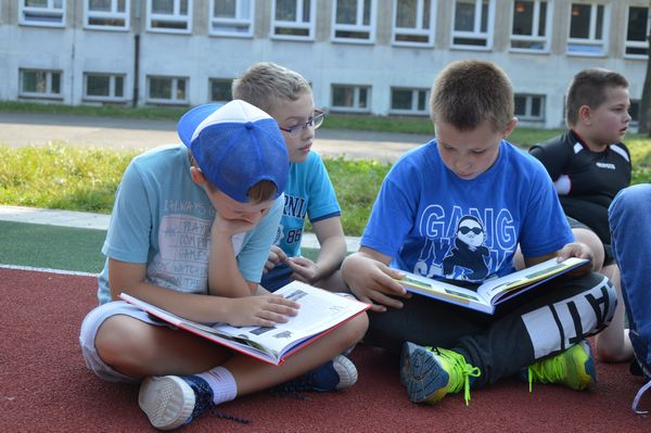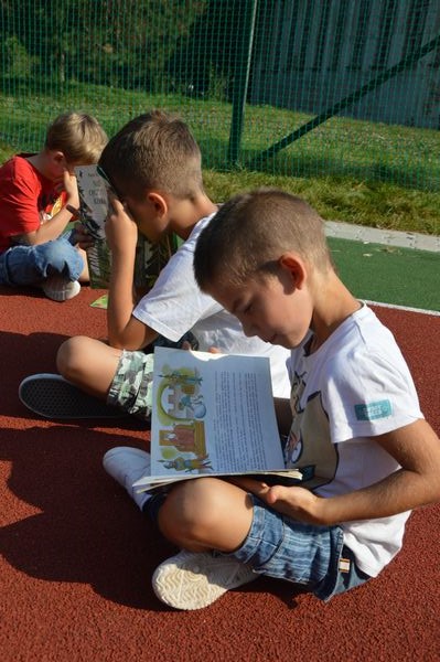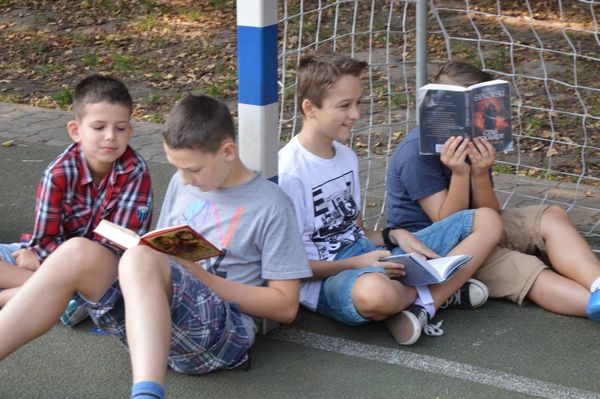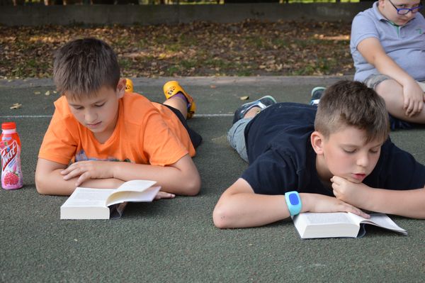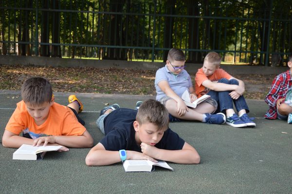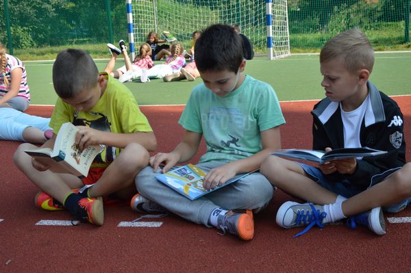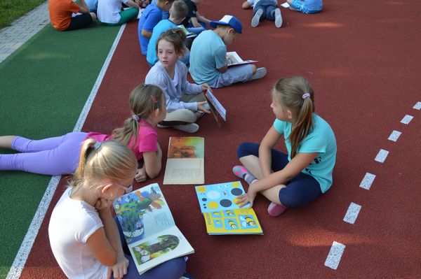 Na trzeciej lekcji wszyscy uczniowie naszej szkoły wyszli na boisko szkolne, gdzie każdy z uczniów czytał sobie przez 15 minut fragment swojej ulubionej książki. Ta wspaniała akcja miała na celu pokazanie, że samodzielne czytanie to świetna zabawa, a nie przykry obowiązek, a pobudzanie apetytu na czytanie zaowocuje pozytywnymi skutkami w przyszłości.