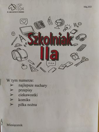 20 Maj 2021 Szkolniak - gazetka klasy 2a Wydarzenia / Aktualności Klasa 2a z pomocą wychowawczyni p. Bożeny Kukli zaprojektowała i wydrukowała pierwszy numer gazetki szkolnej "Szkolniak". Kolejny numer ukaże się w czerwcu.