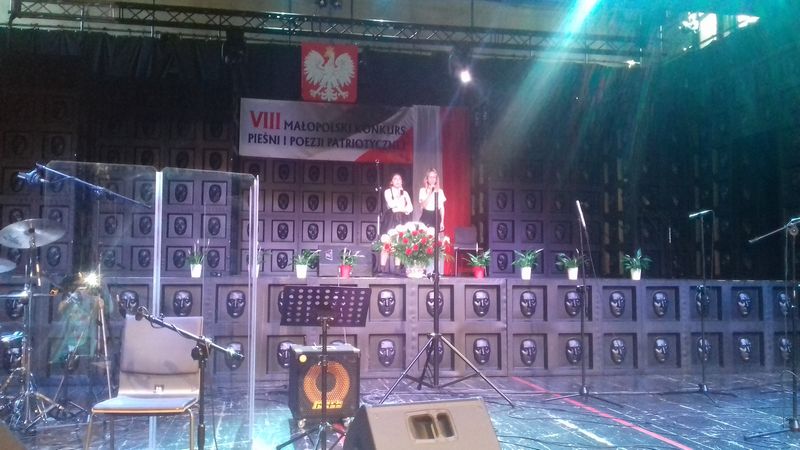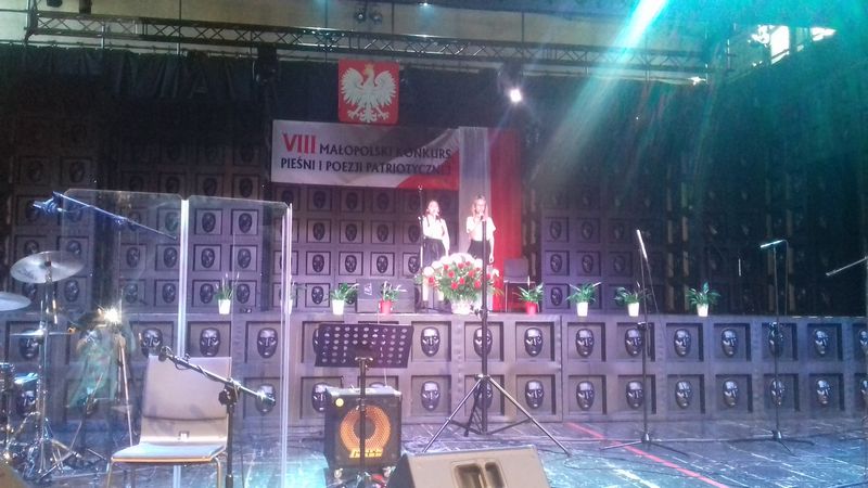 Uczennice klasy 7a Iza Chowaniec i Patrycja Dziedzic reprezentowały naszą szkołę dnia 10 października na VIII Małopolskim Konkursie Pieśni i Poezji Patriotycznej zorganizowanym przez Zespół Szkół Gastronomicznych nr 1 w Krakowie we współpracy z Biurem Poselskim Posła na Sejm Ireneusza Rasia. Konkurs odbył się uroczyście w Teatrze Łaźnia Nowa ze względu na 100 rocznicę Odzyskania przez Polskę Niepodległości.