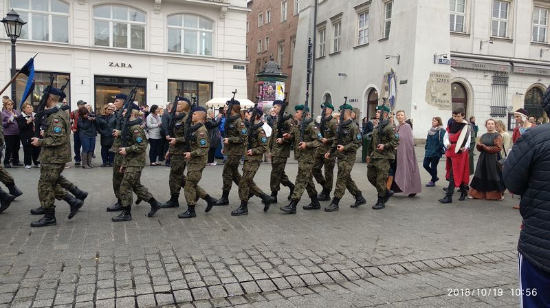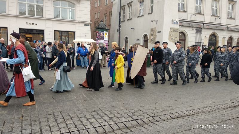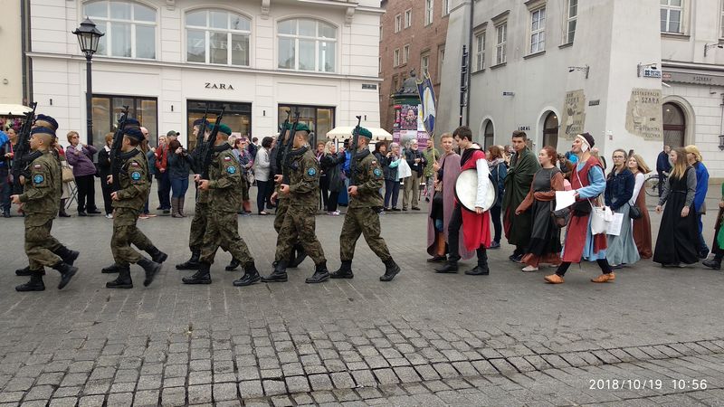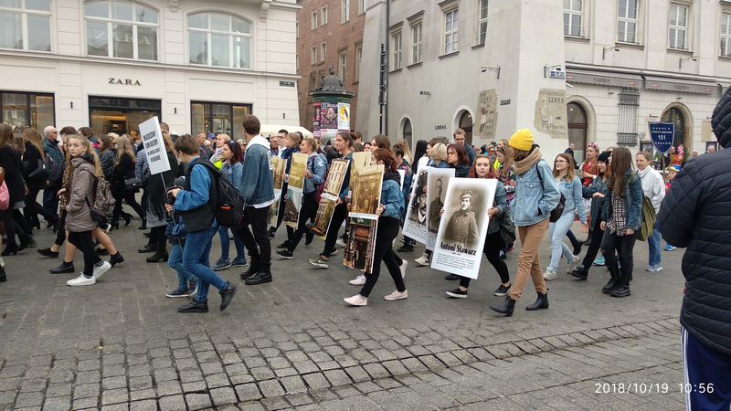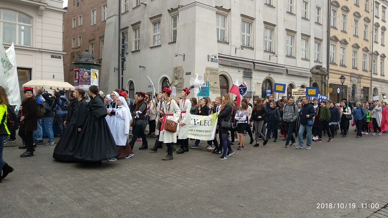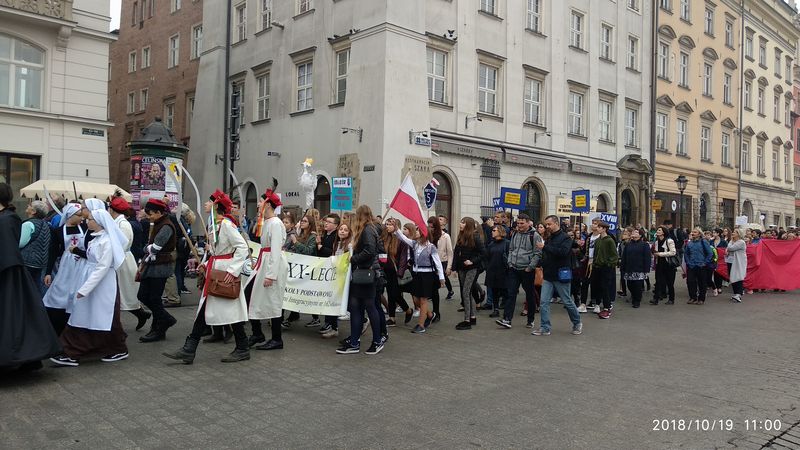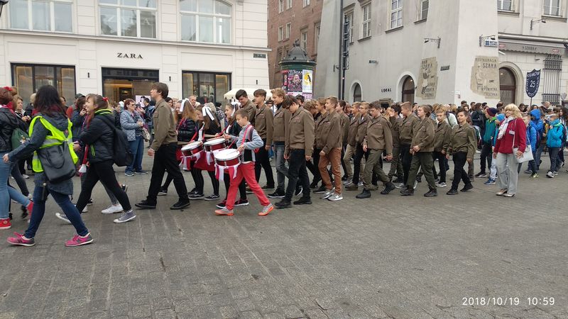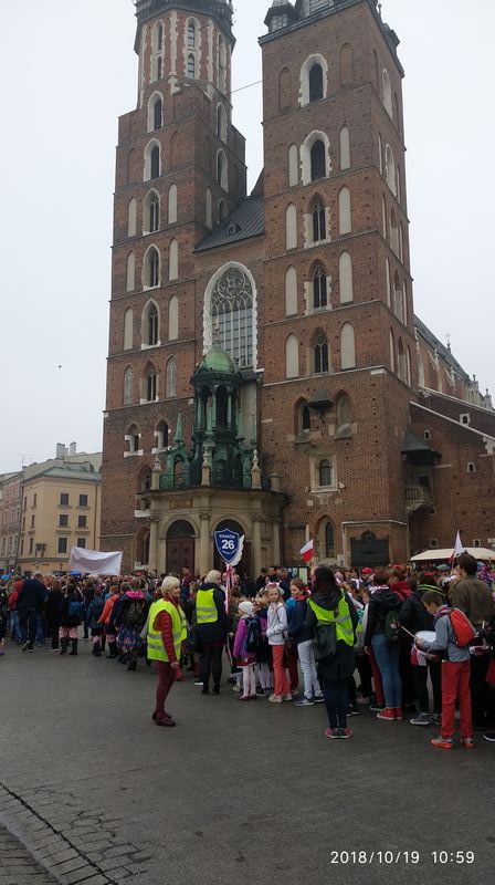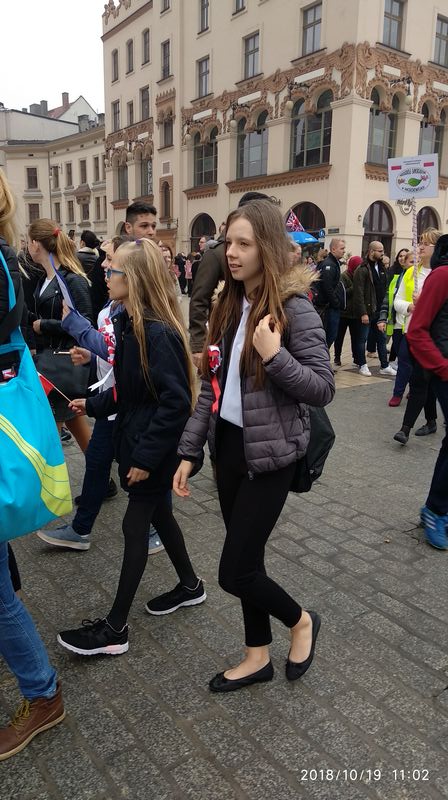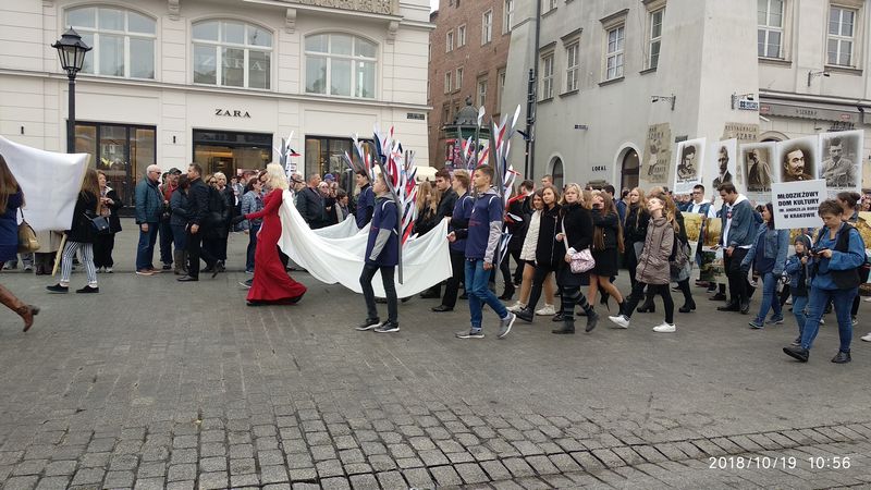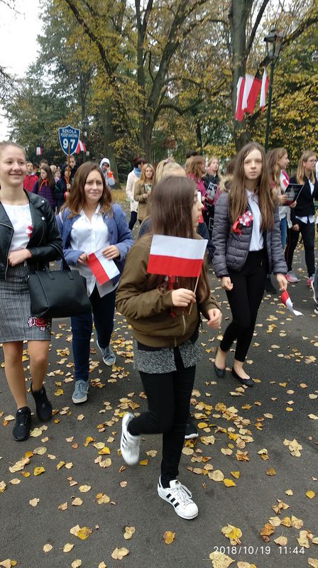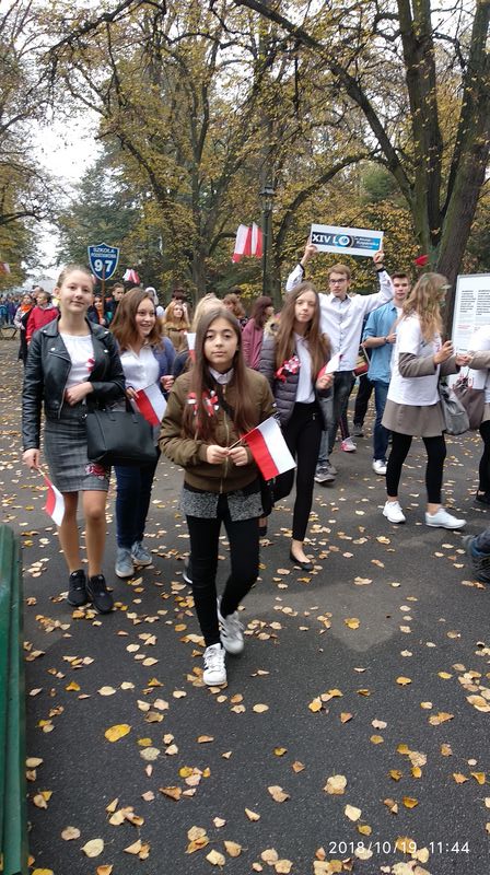 Dnia 19 października 2018r. odbyło się Widowisko Dumy i Radości. Aby uczcić 100 rocznicę odzyskania przez Polskę niepodległości do Krakowa przyjechało 10 tysięcy uczniów z różnych zakątków małopolski. Część z nich przybyła na uroczystość poprzebierana w stroje z epoki, z regionu. Nieśli sztandary szkół, proporce i tablice z napisami, za co kochają Polskę. Widowisko rozpoczęło się Mszą Św. w Katedrze Wawelskiej. Marsz rozpoczął się na Wzgórzu Wawelskim po Mszy Św. Rozpoczął go Jeździec Pamięci - jadący konno Pan Włodzimierz "Wowa" Brodecki. Ze Wzgórza Wawelskiego marsz kierował się do zejścia w stronę ulicy Bernardyńskiej, następnie ulicą Grodzką, Rynkiem Głównym, ulicą Szewską, ulicą Piłsudskiego do Parku Jordana. W Parku Jordana można było porozmawiać z Żołnierzami Niezłomnymi, odwiedzić stoiska sponsorów, odbył się również poczęstunek. Naszą szkołę reprezentowały i dzielnie maszerowały uczennice klasy VIIa: Izabela Chowaniec, Patrycja Dziedzic, Karolina Godula, Weronika Hamera i Oliwia Orlewicz.