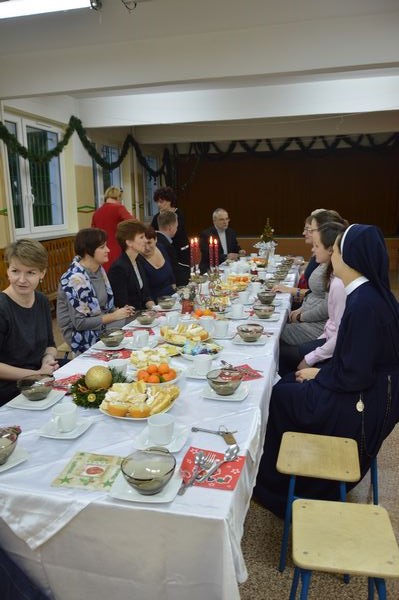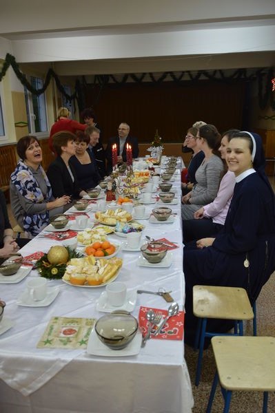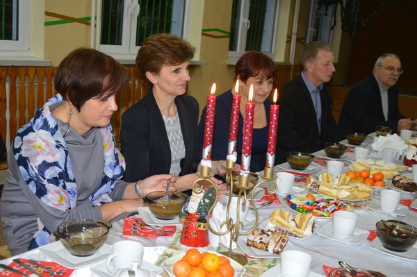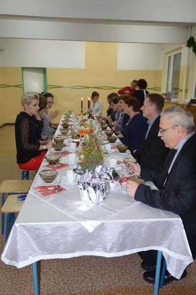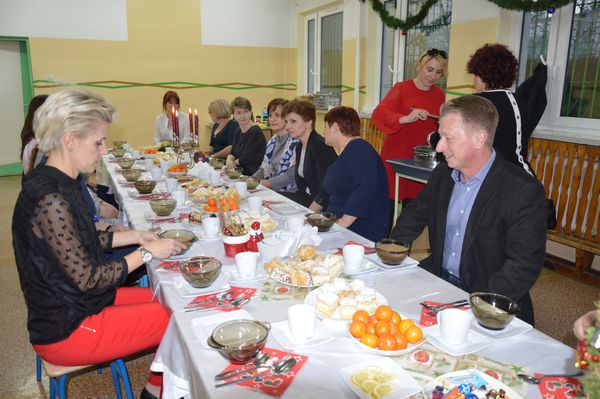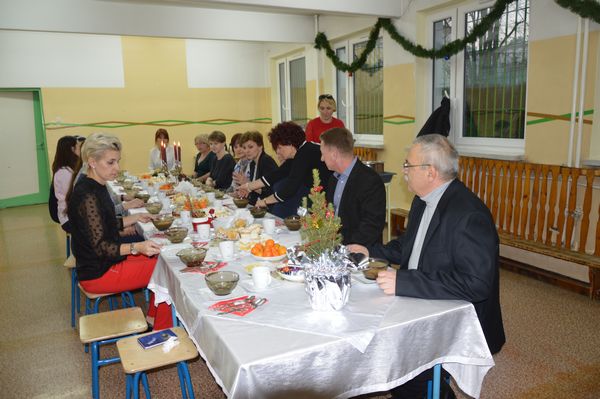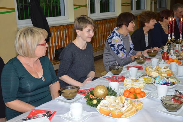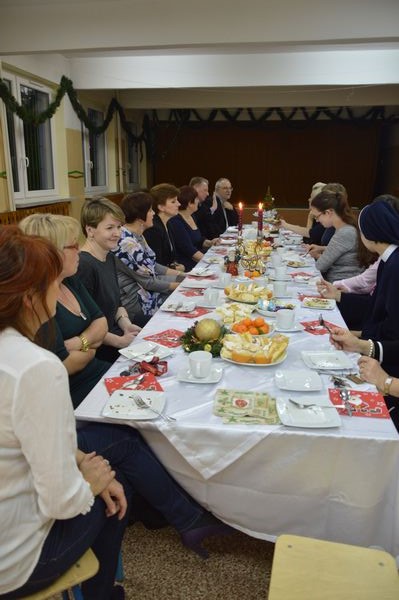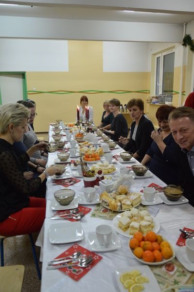 Dnia 22 grudnia 2016 r. odbyło się świąteczne spotkanie nauczycieli i pracowników szkoły. Pani Dyrektor – Magdalena Hyla złożyła wszystkim najserdeczniejsze świąteczne życzenia, zdrowych, pogodnych Świąt Bożego Narodzenia, wielu sukcesów zawodowych oraz wszystkiego co najlepsze w 2017 roku. Następnie wszyscy przystąpili do uroczystej wigilii przy barszczyku i pierożku.