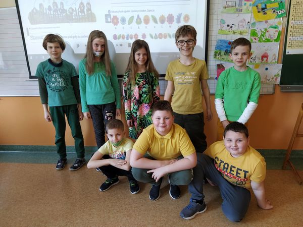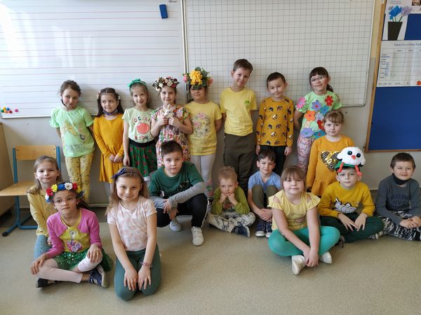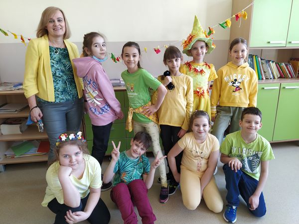 Dnia 21 marca obchodziliśmy w naszej szkole Pierwszy Dzień Wiosny. Z tej okazji uczniowie klas 1-3 ubrali się na żółto-zielono. Mile widziane były akcenty wiosenne. Najciekawszy strój zaprezentowali: