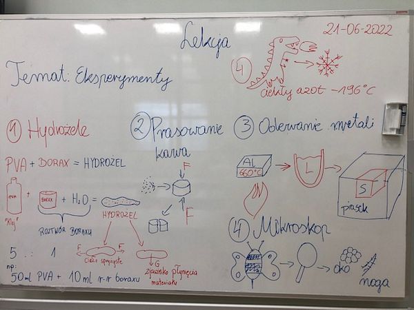 Dnia 21 czerwca klasa 3a odwiedziła Politechnikę Krakowską, Wydział Inżynierii Materiałowej i Fizyki. Dzieci eksperymentowały na 5 stanowiskach: odlewanie metali, obserwacja pod mikroskopem, prasowanie kawy, robienie hydrożelków, mrożenie ciekłym azotem.