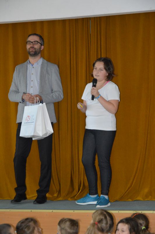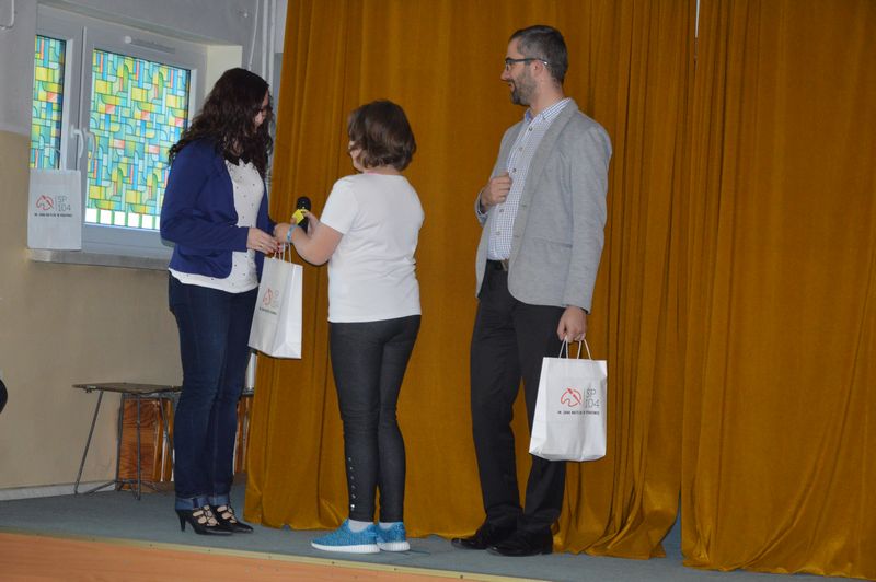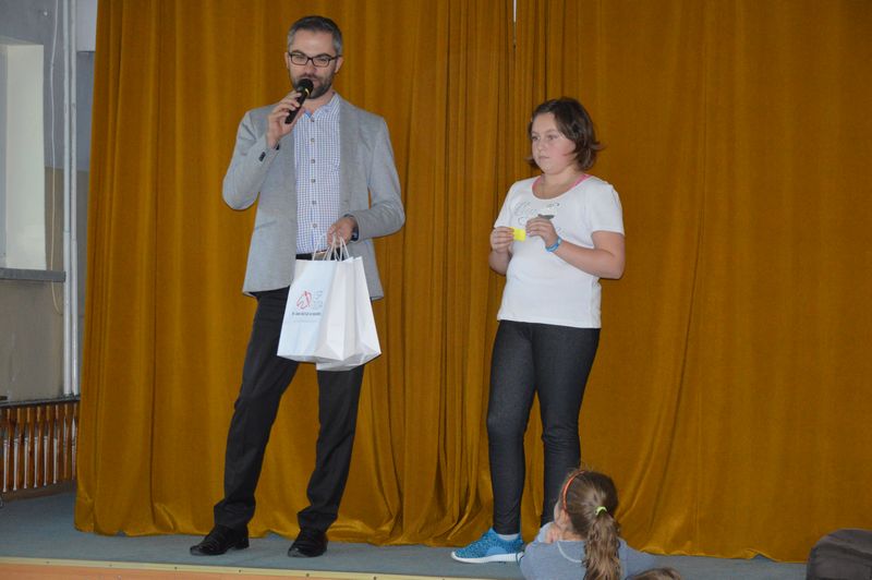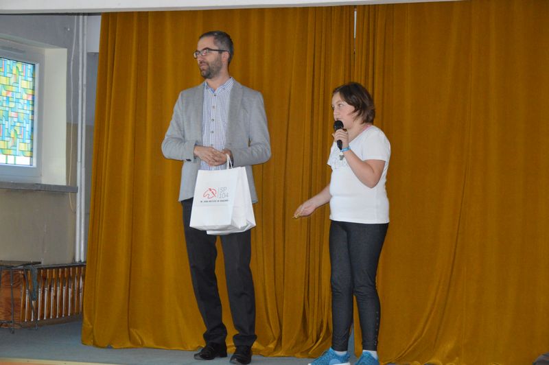 Przewodniczący Rady Rodziców pan Krystian Gręda wręczył laureatom nagrody, zaś zwyciężczyni pani Anna Błodek-Muzyk skierowała do nas następujące słowa: "Wszyskim uczniom, Radzie Rodziców bardzo dziękuję za wspaniałe wyróżnieni, które sprawiło mi ogromną radość i wzruszenie. Zaufanie i sympatia dzieci jest dla mnie wielką motywacją do dalszej pracy".