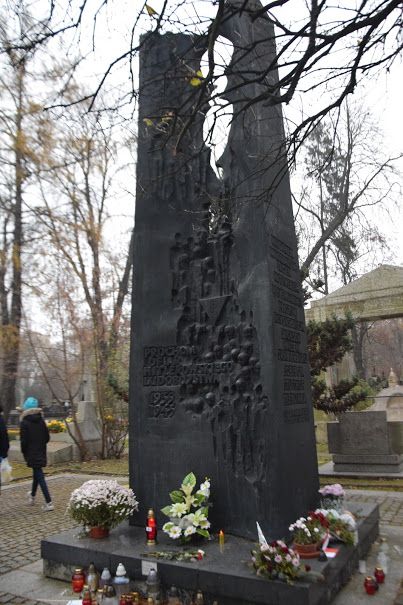 Przy wejściu na cmentarz spotkaliśmy się z panem Pawłem - naszym przewodnikiem po krakowskiej nekropolii. Pochowanych jest tu wielu zasłużonych: twórców kultury, naukowców, działaczy niepodległościowych, uczestników ruchów niepodległościowych, powstań, obu wojen światowych. Nie sposób zatrzymać się przy każdej mogile.