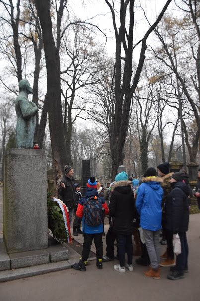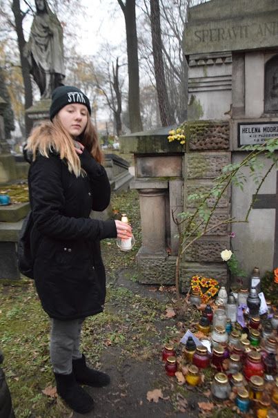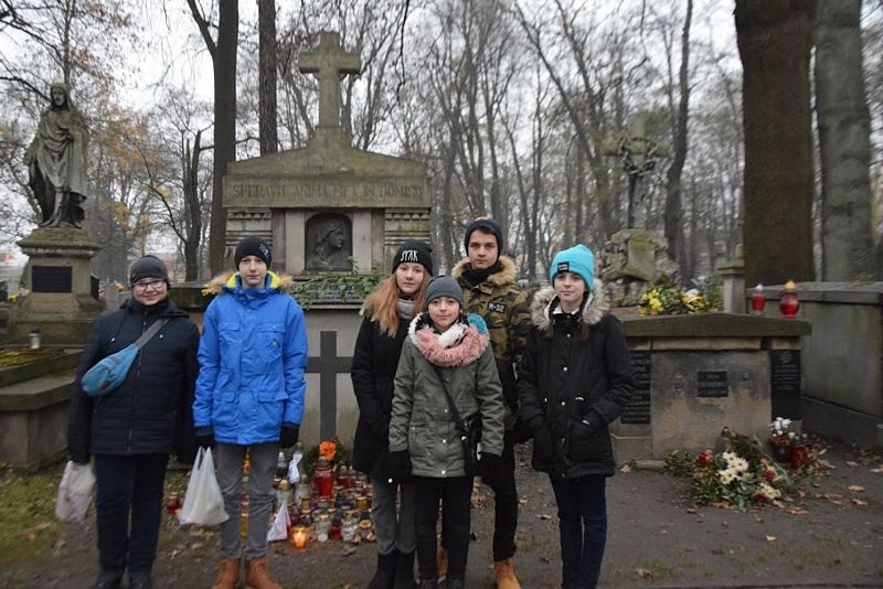 Listopad to miesiąc, w którym zgodnie z tradycją odwiedzamy groby bliskich, przyjaciół i osób, których nie znaliśmy, polecając ich naszej modlitwie. Listopad 2018 roku to dla nas Polaków data szczególna - w tym roku obchodzimy 100 rocznice odzyskania niepodległości. To właśnie zadecydowało, że szkolne koło historyczne postanowiło wybrać się na Cmentarz Rakowicki, by zapalić znicze na grobach zasłużonych Polaków.