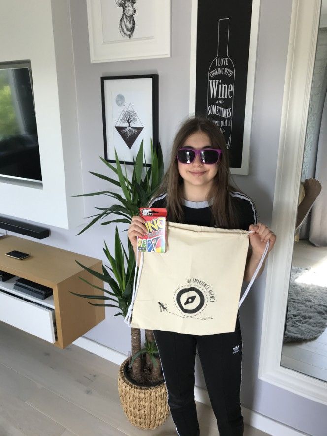 Na zdjęciu Patrycja i nagrody, które przesłali organizatorzy projektu.