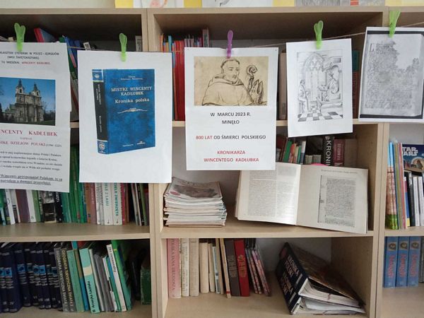 W grudniu 2023r. w Bibliotece pokazano małą wystawę na temat: "Minęło 800 lat od śmierci polskiego kronikarza Wincentego Kadłubka". Do Biblioteki Szkolnej została wypożyczona z Biblioteki Miejskiej Krakowa "Kronika Mistrza Wincentego Kadłubka", w ten sposób uczniowie mogli przez pewien czas poznawać treść Kroniki dziejów Polski.
