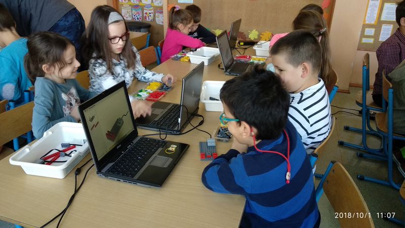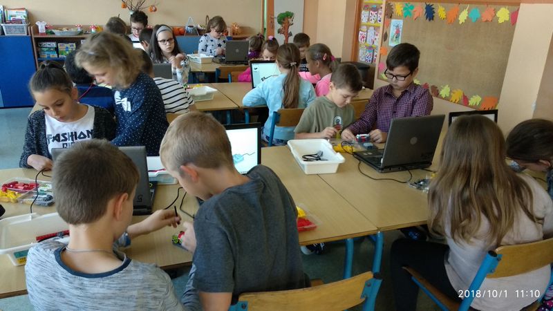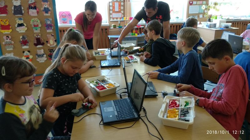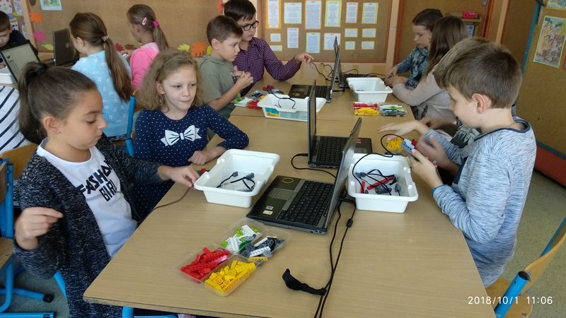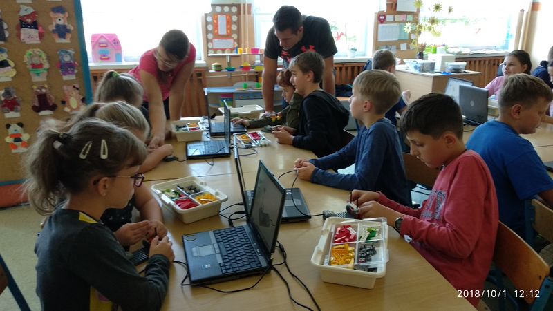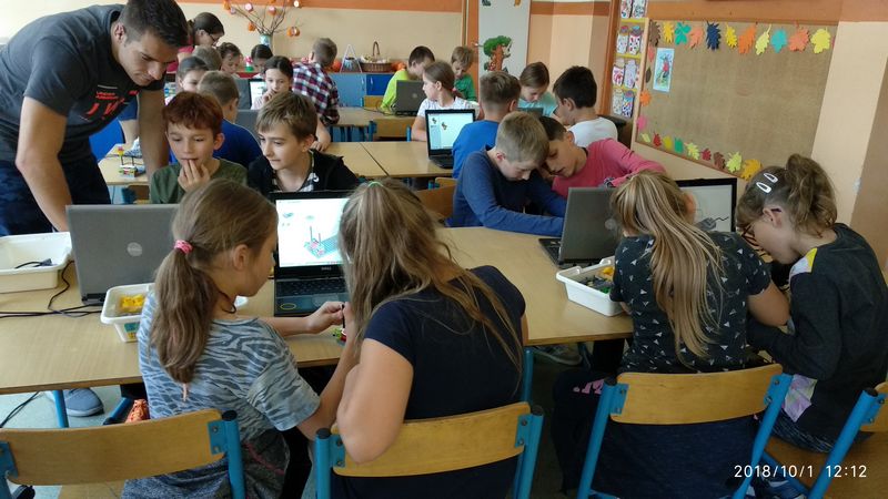 Dziś odbyły się w naszej szkole próbne, pokazowe warsztaty z robotyki. W trakcie zajęć dzieci budowały i programowały swoje roboty. Trenerzy również omówili na czym dokładnie polegają zajęcia oraz jakie zasady na nich obowiązują. Celem zajęć z robotyki jest: budowanie i programowanie robotów, nauka logicznego myślenia, poznanie świata najnowszej technologii. Zajęcia te są płatne, dzieci dostały ulotki z informacjami.