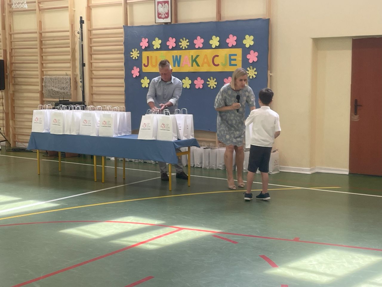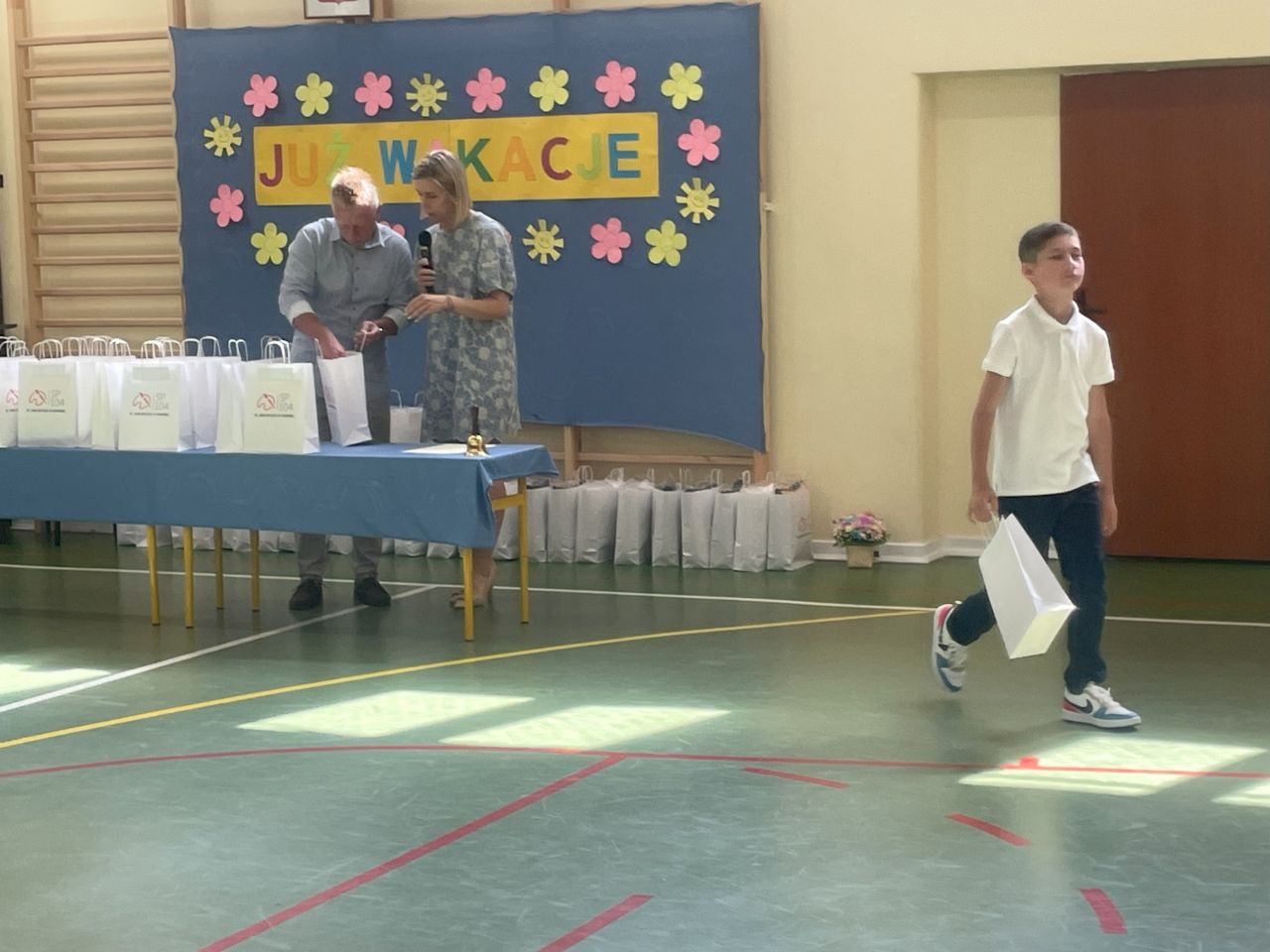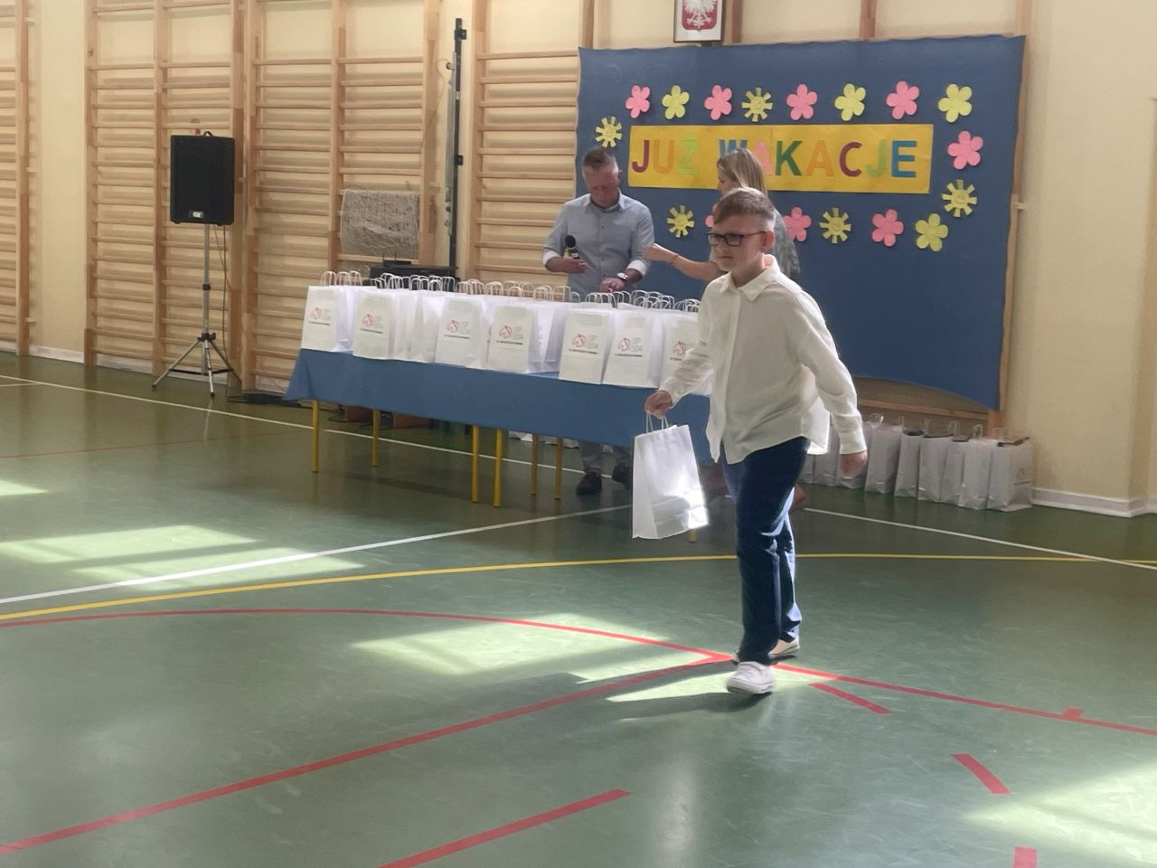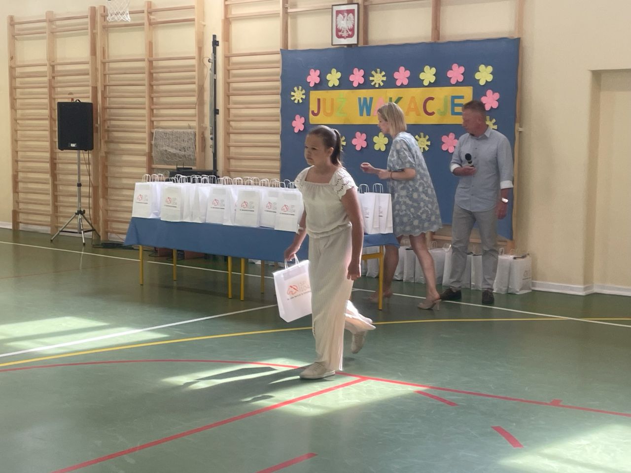 Dnia 27 czerwca odbyło się uroczyste zakończenie roku szkolnego 2024/2025. Pani dyrektor Magdalena Hyla podsumowała pracę w bieżącym roku szkolnym, następnie wręczyła dzieciom dyplomy wraz z gratulacjami. Wszystkim uczniom naszej szkoły życzymy dobrego wypoczynku oraz radosnych i bezpiecznych wakacji.