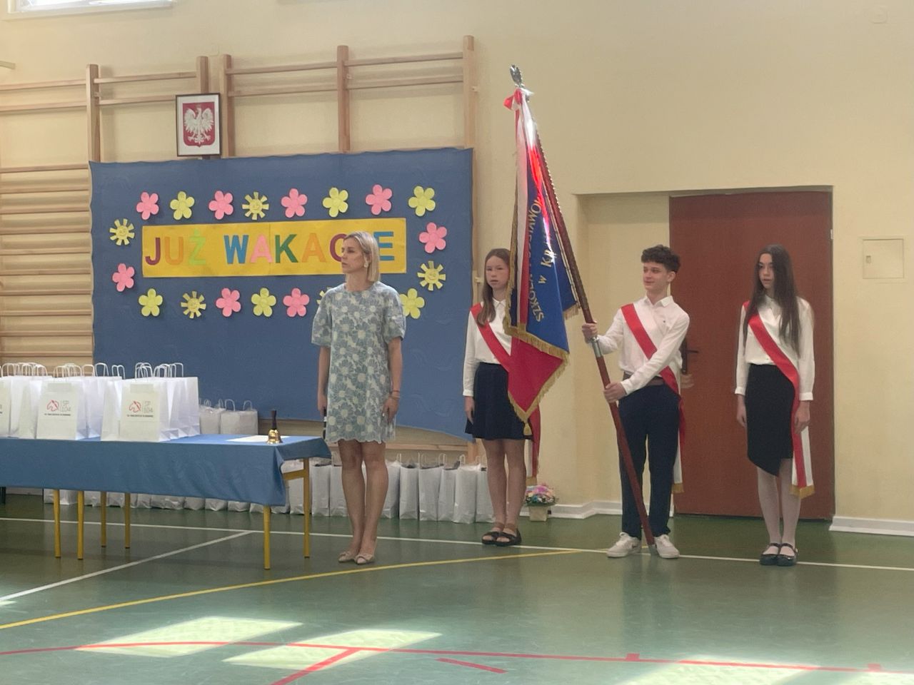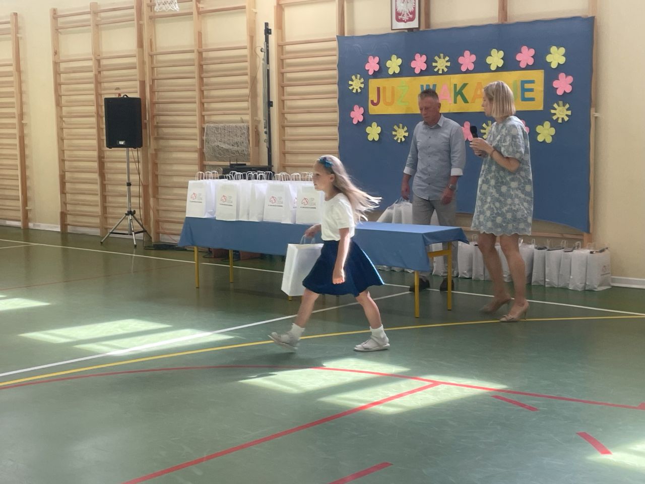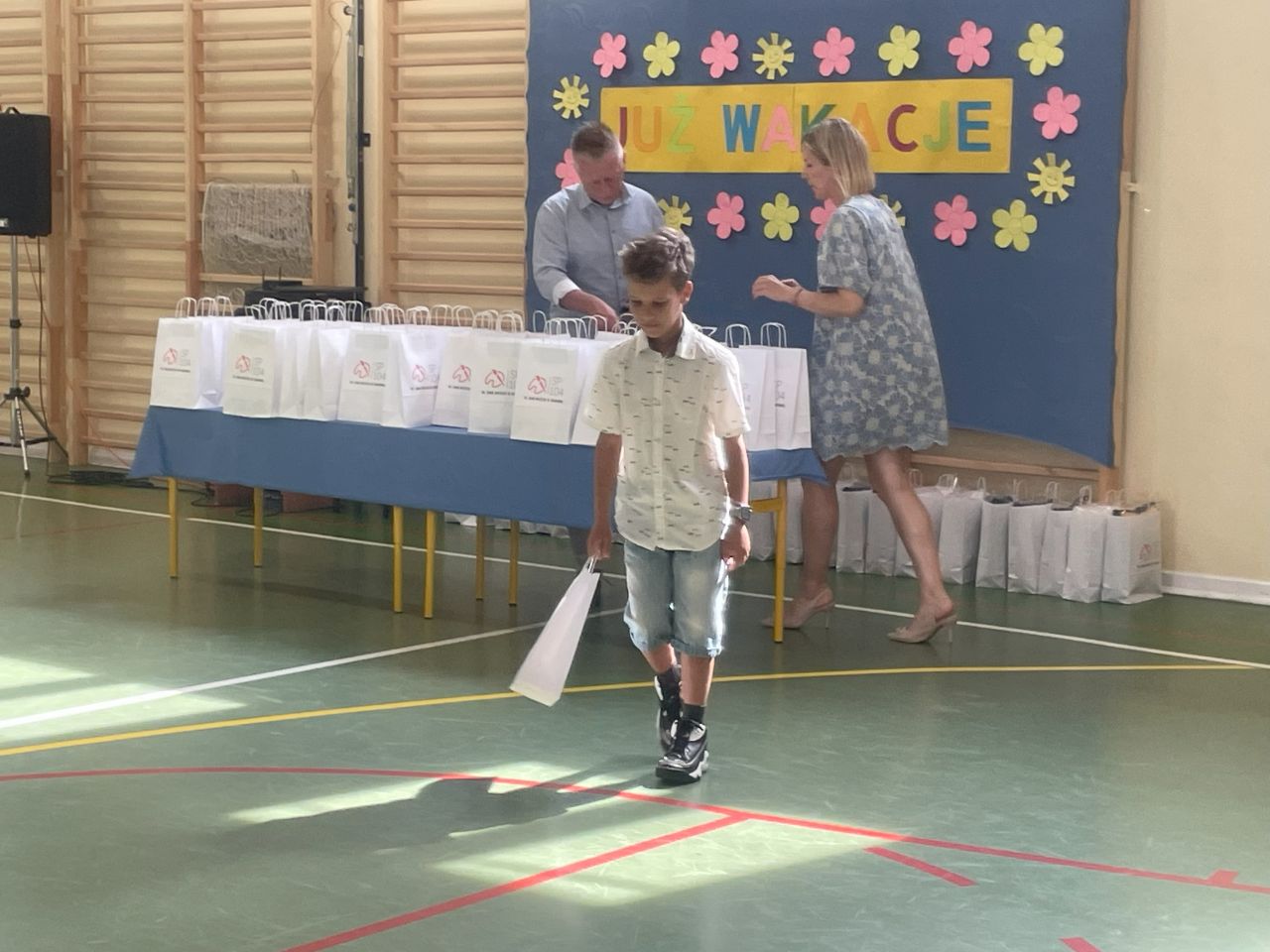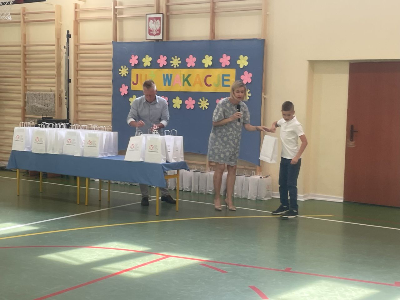 Dnia 27 czerwca odbyło się uroczyste zakończenie roku szkolnego 2024/2025. Pani dyrektor Magdalena Hyla podsumowała pracę w bieżącym roku szkolnym, następnie wręczyła dzieciom dyplomy wraz z gratulacjami. Wszystkim uczniom naszej szkoły życzymy dobrego wypoczynku oraz radosnych i bezpiecznych wakacji.