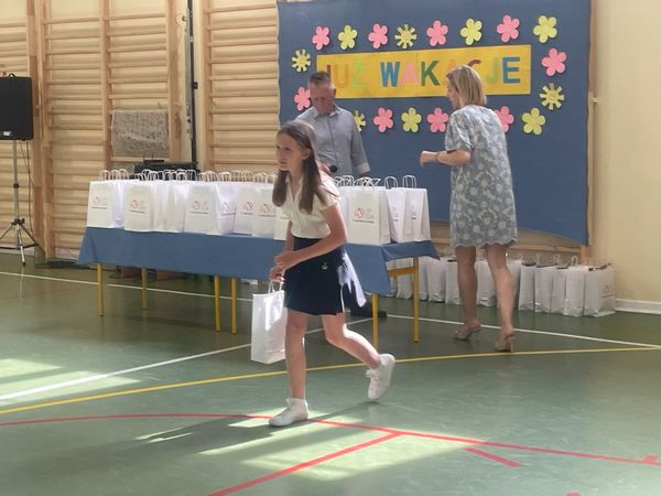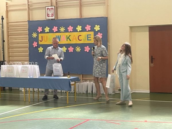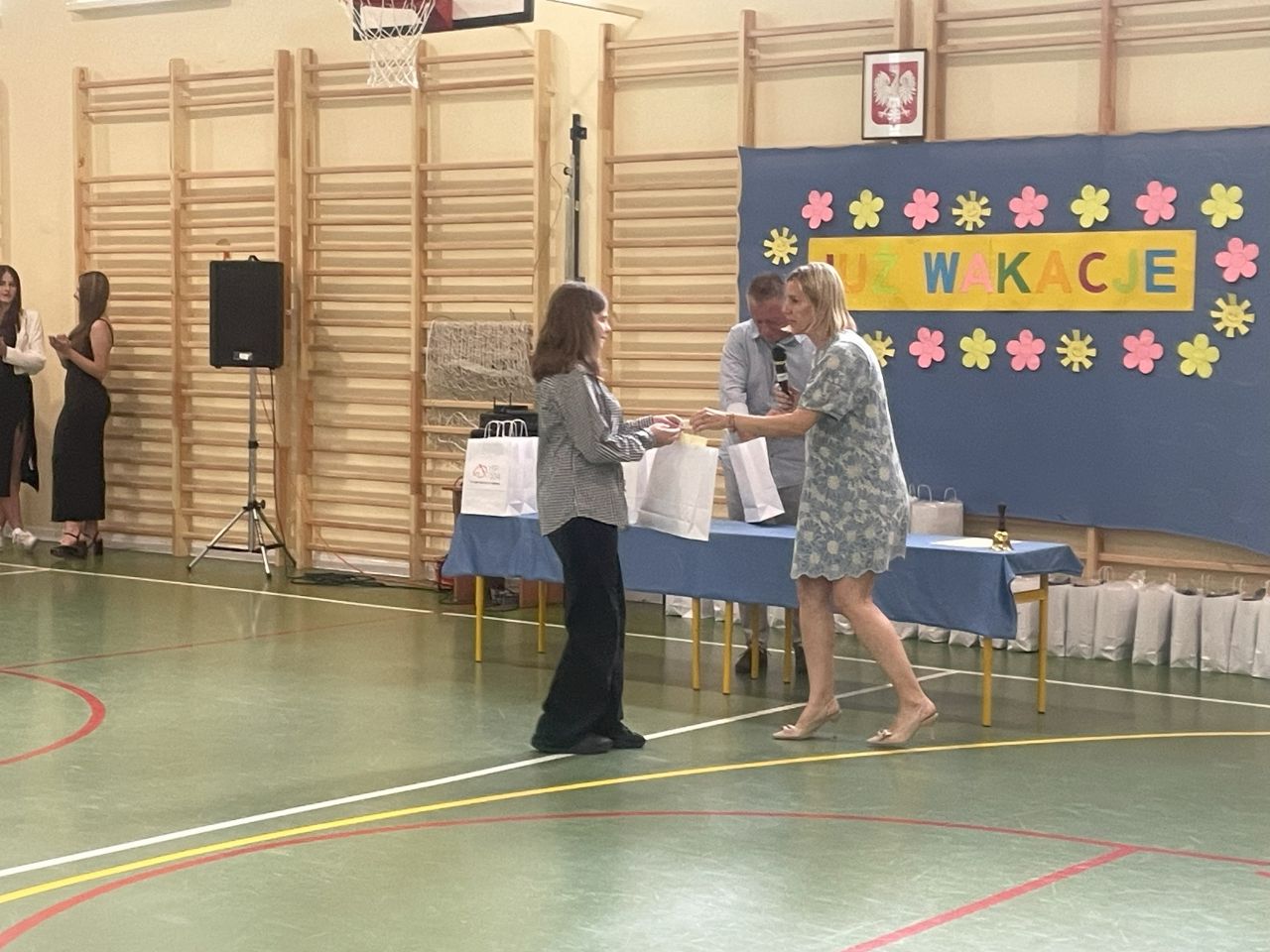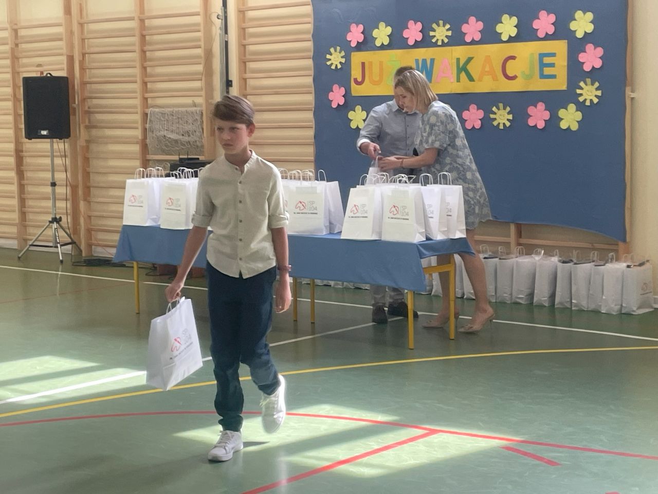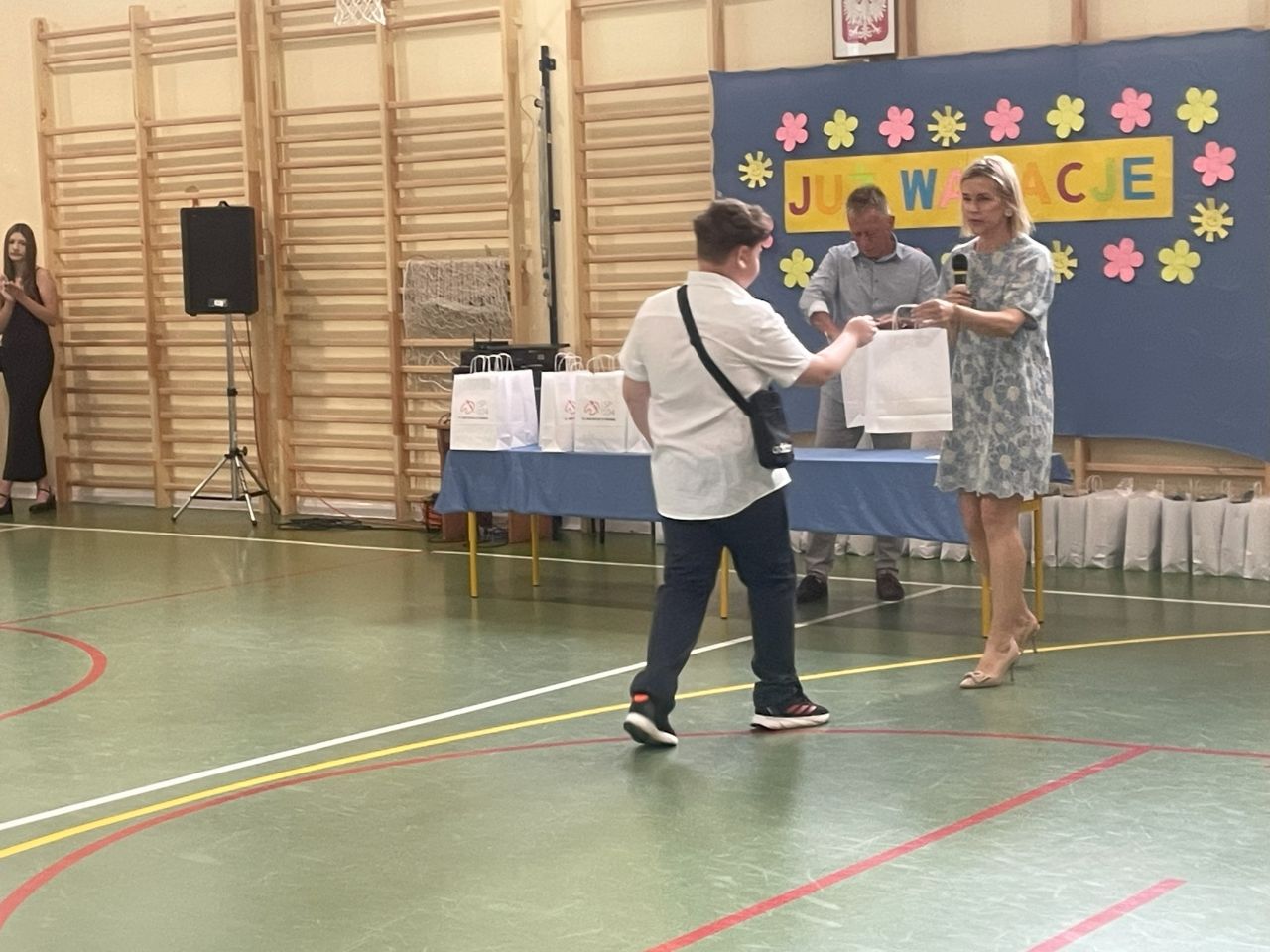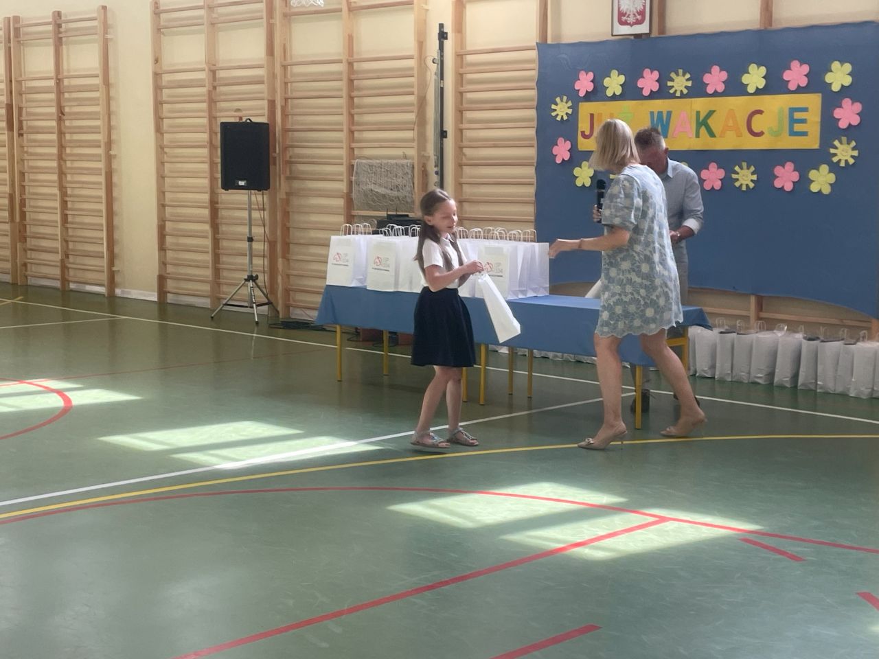 Dnia 27 czerwca odbyło się uroczyste zakończenie roku szkolnego 2024/2025. Pani dyrektor Magdalena Hyla podsumowała pracę w bieżącym roku szkolnym, następnie wręczyła dzieciom dyplomy wraz z gratulacjami. Wszystkim uczniom naszej szkoły życzymy dobrego wypoczynku oraz radosnych i bezpiecznych wakacji.