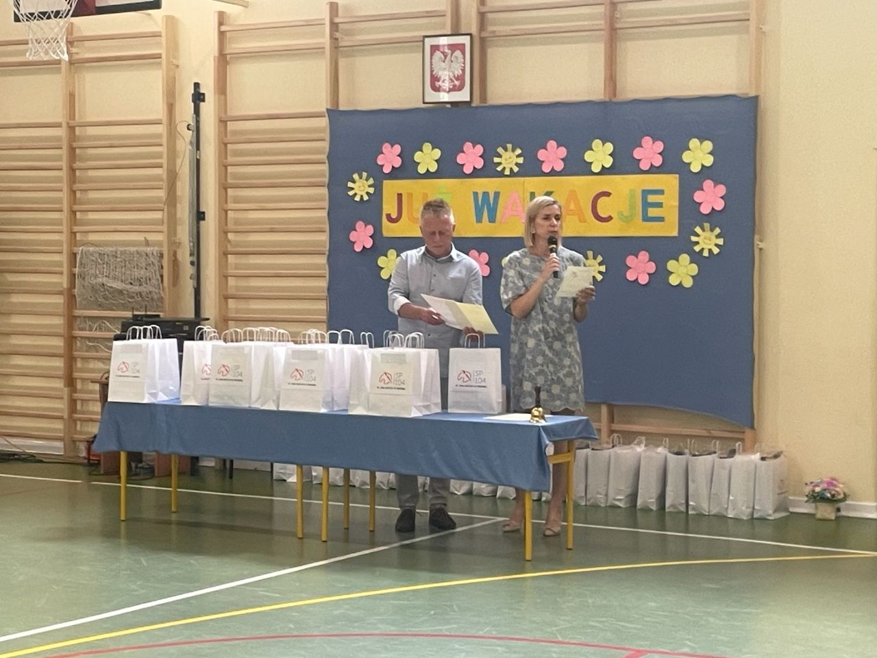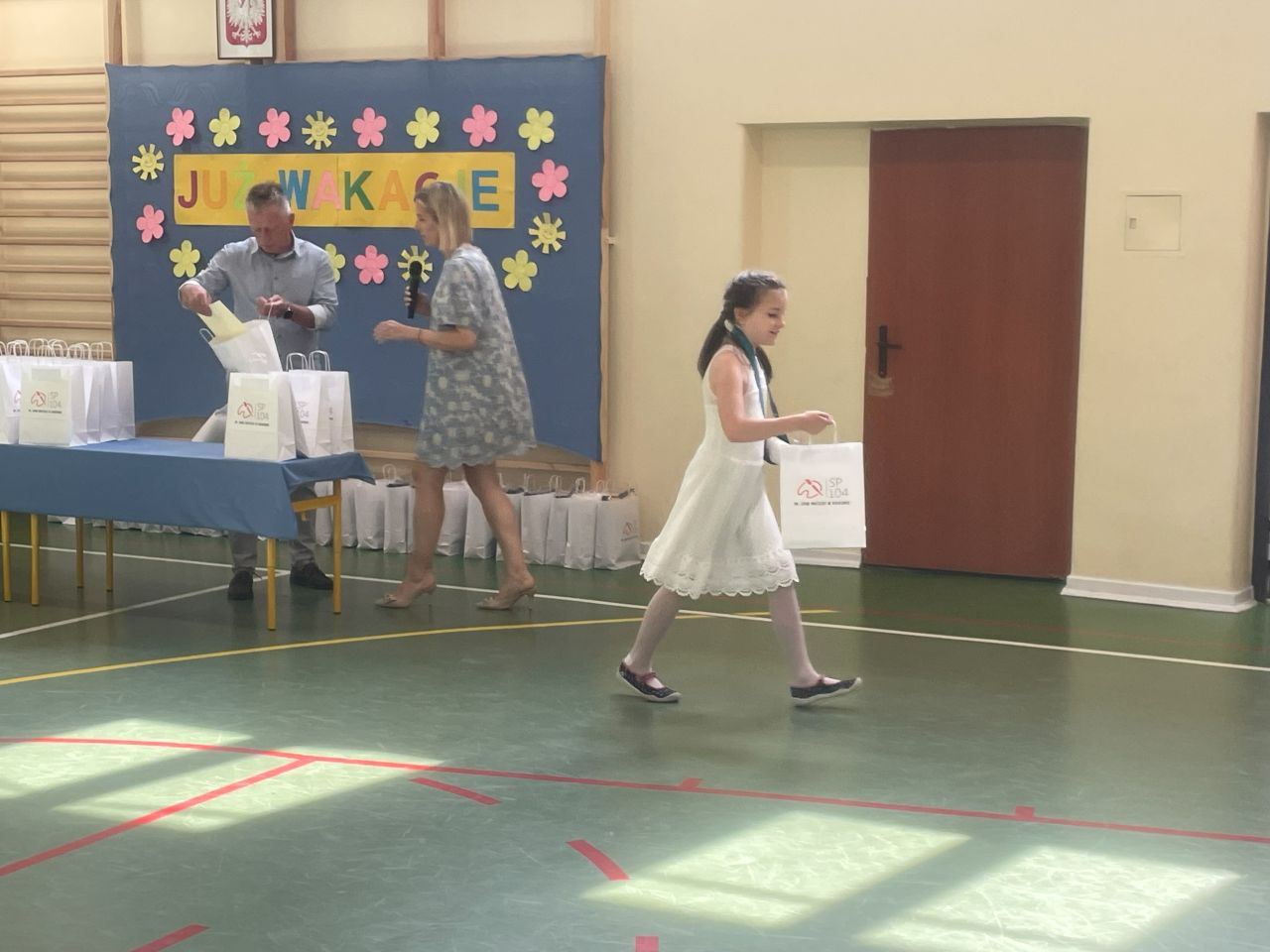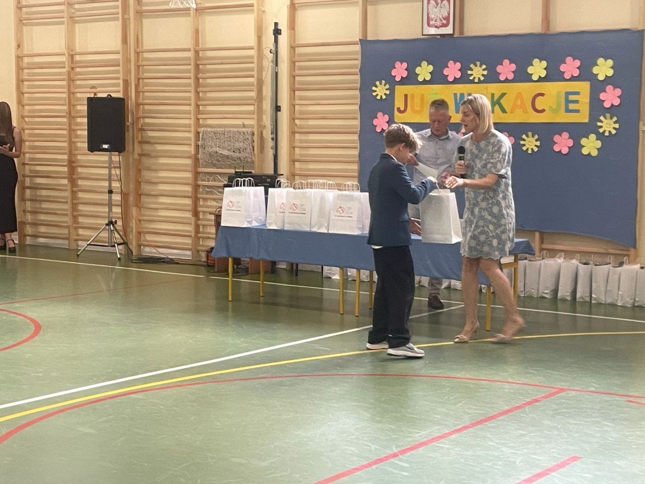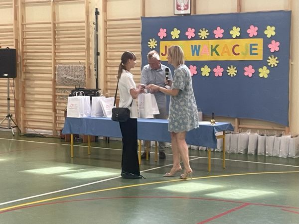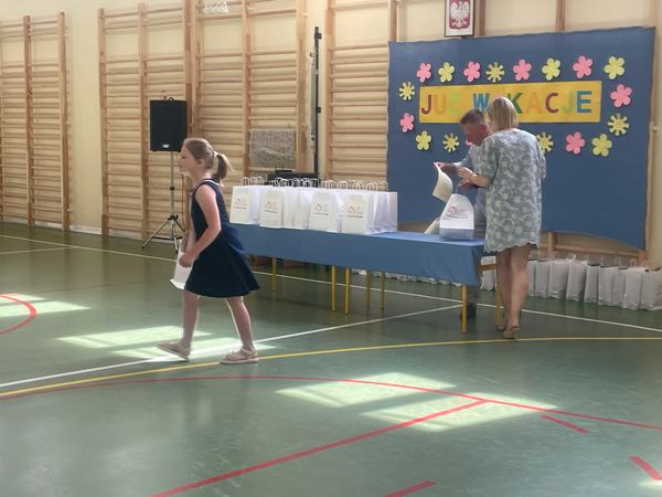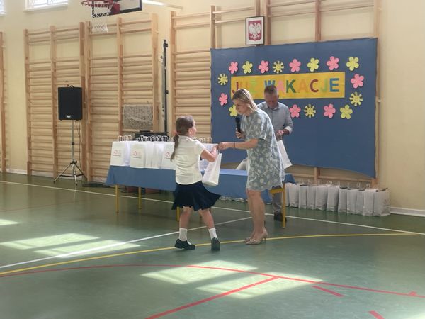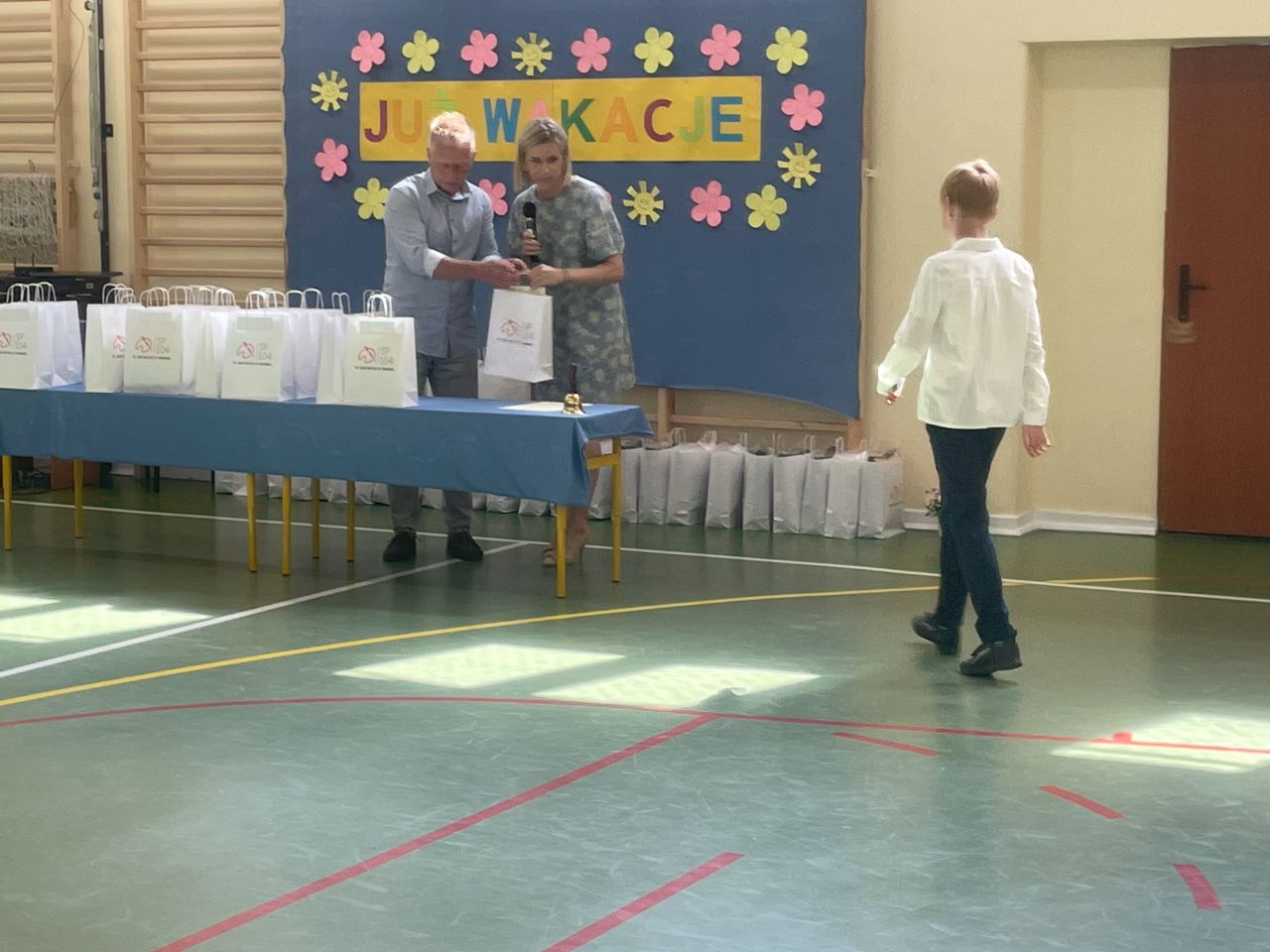 Dnia 27 czerwca odbyło się uroczyste zakończenie roku szkolnego 2024/2025. Pani dyrektor Magdalena Hyla podsumowała pracę w bieżącym roku szkolnym, następnie wręczyła dzieciom dyplomy wraz z gratulacjami. Wszystkim uczniom naszej szkoły życzymy dobrego wypoczynku oraz radosnych i bezpiecznych wakacji.