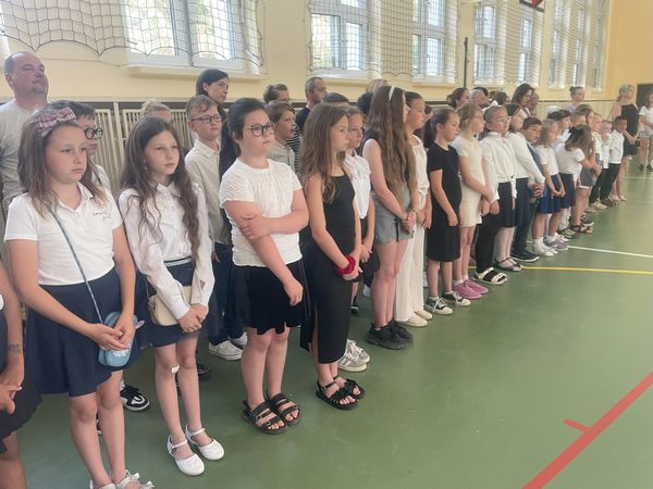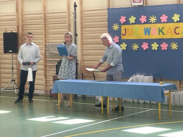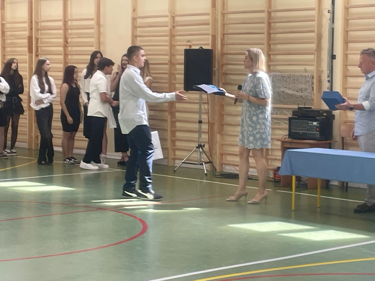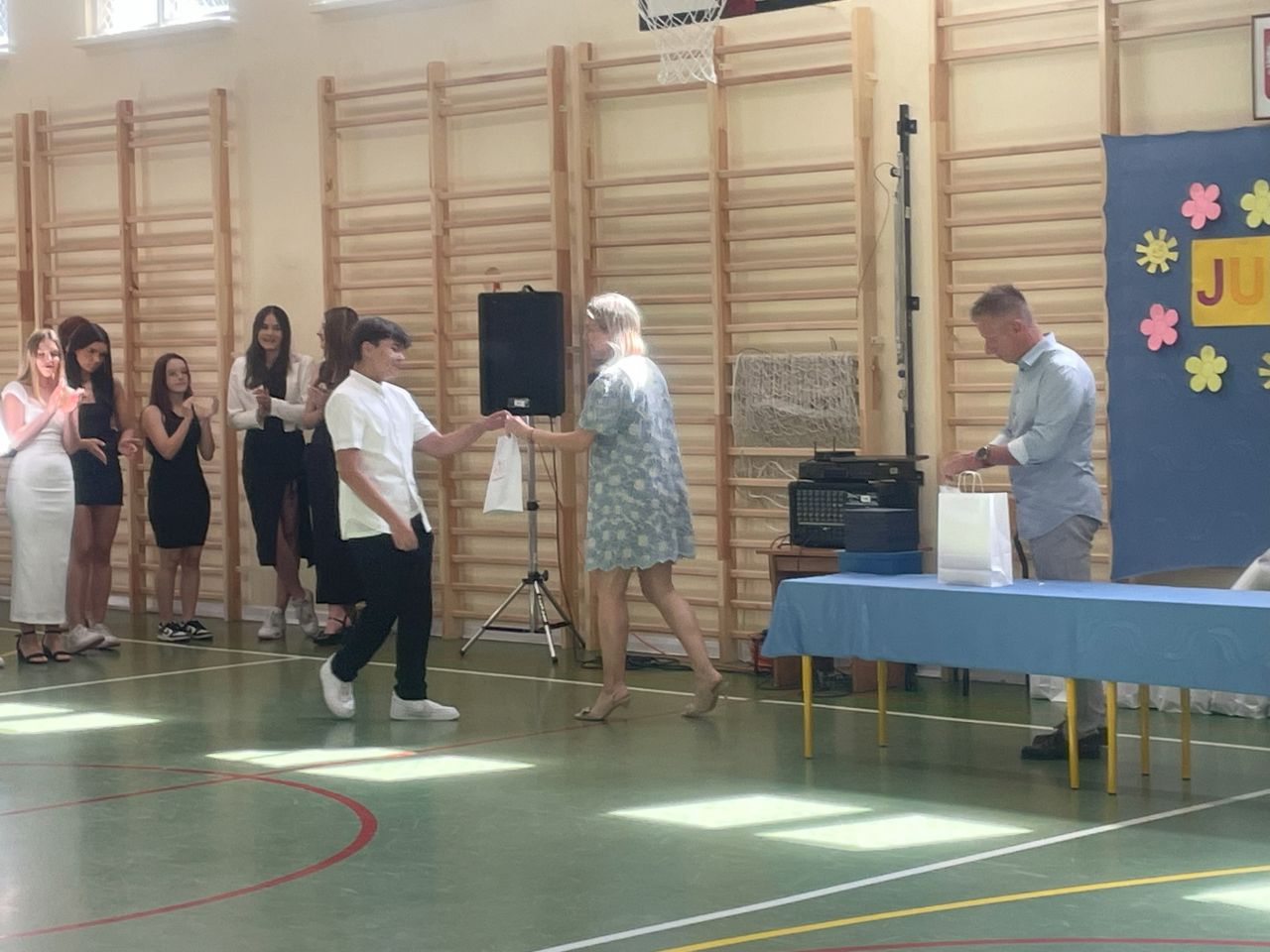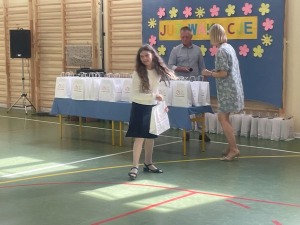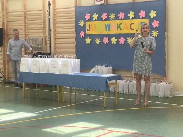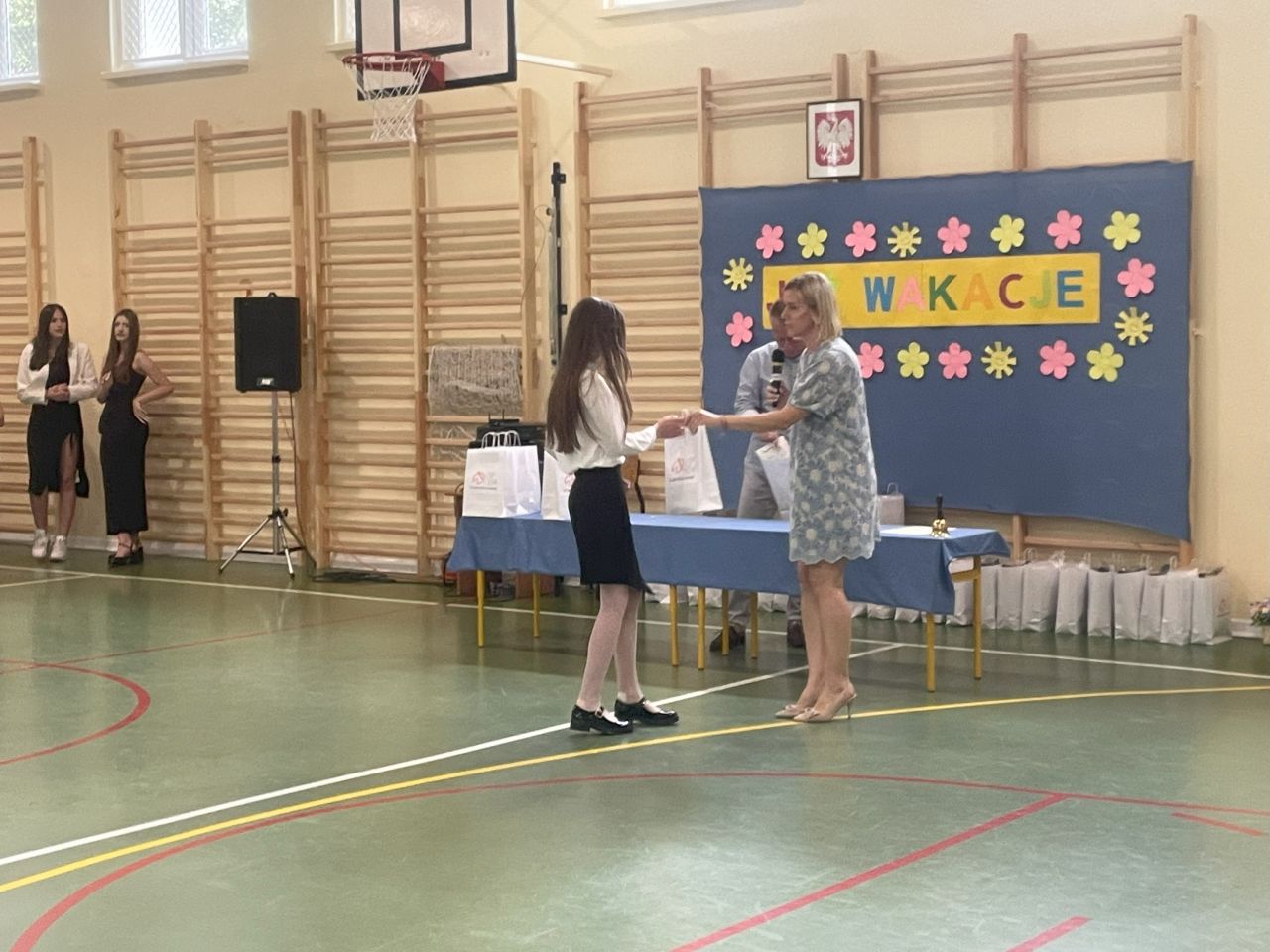 Dnia 27 czerwca odbyło się uroczyste zakończenie roku szkolnego 2024/2025. Pani dyrektor Magdalena Hyla podsumowała pracę w bieżącym roku szkolnym, następnie wręczyła dzieciom dyplomy wraz z gratulacjami. Wszystkim uczniom naszej szkoły życzymy dobrego wypoczynku oraz radosnych i bezpiecznych wakacji.