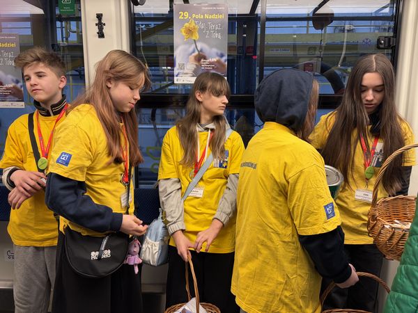 16 Kwi 2026 Żonkilowy tramwaj Wydarzenia / Aktualności 14 kwietnia wolontariusze z naszej szkoli wzięli udział w akcji "Żonkilowy tramwaj". To wyjątkowy tramwaj linii nr 8, w którym wolontariusze prowadzili kwestę na rzecz Hospicjum Św. Łazarza w Krakowie.